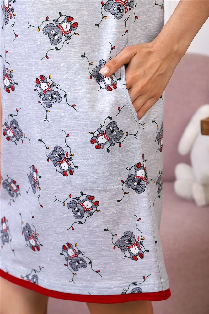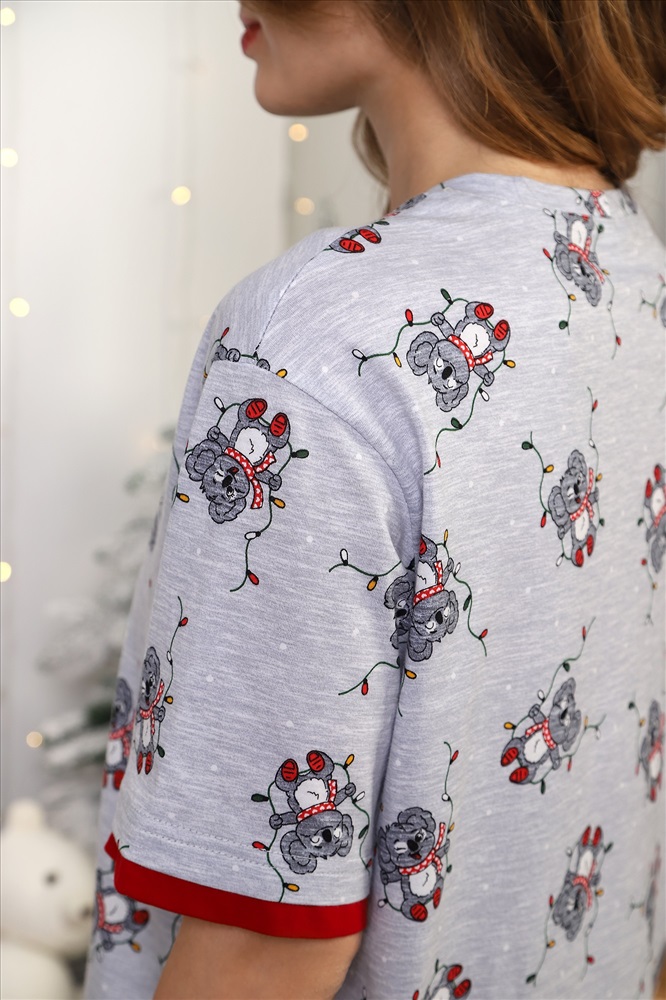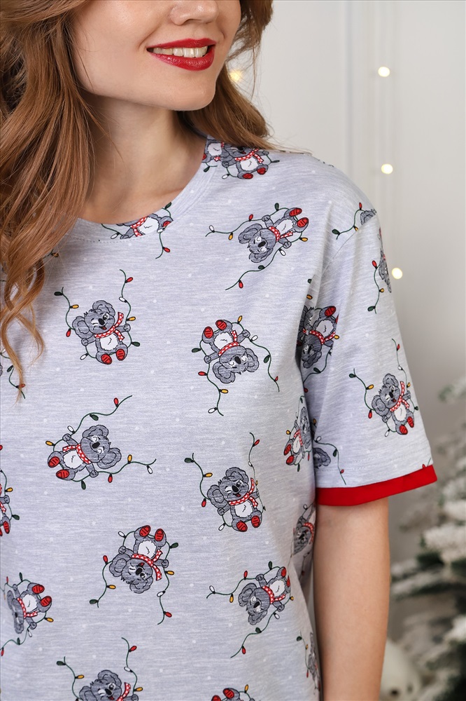 Туника молодежная из трикотажного полотна «кулирка» в комбинации двух видов ткани: с набивным рисунком и гладкокрашенного, прямого силуэта, с короткими втачными рукавами, горловиной овальной формы, обработанной втачной планкой и карманами в боковых швах. Рукава и низ туники отделаны притачными планками из контрастного материала.