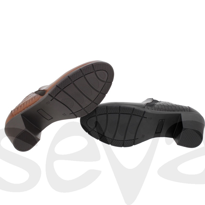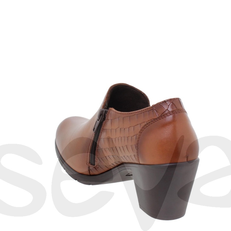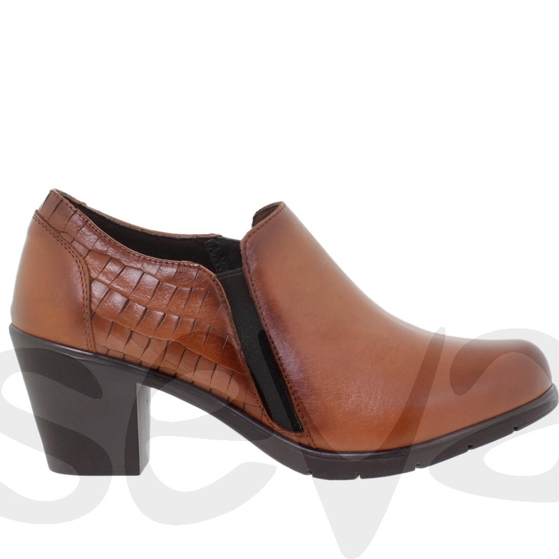 Colores: CUERO Numeración: 35,36,37,38,39,40,41 - Altura del tacón / cuña (cm.): 6.5- Material exterior-Corte : Piel.- Plantilla: Textil y extraíble.- Material interior-Forro: Textil.- Piso-Suela: Sintético.