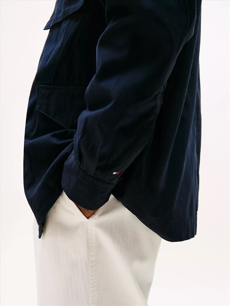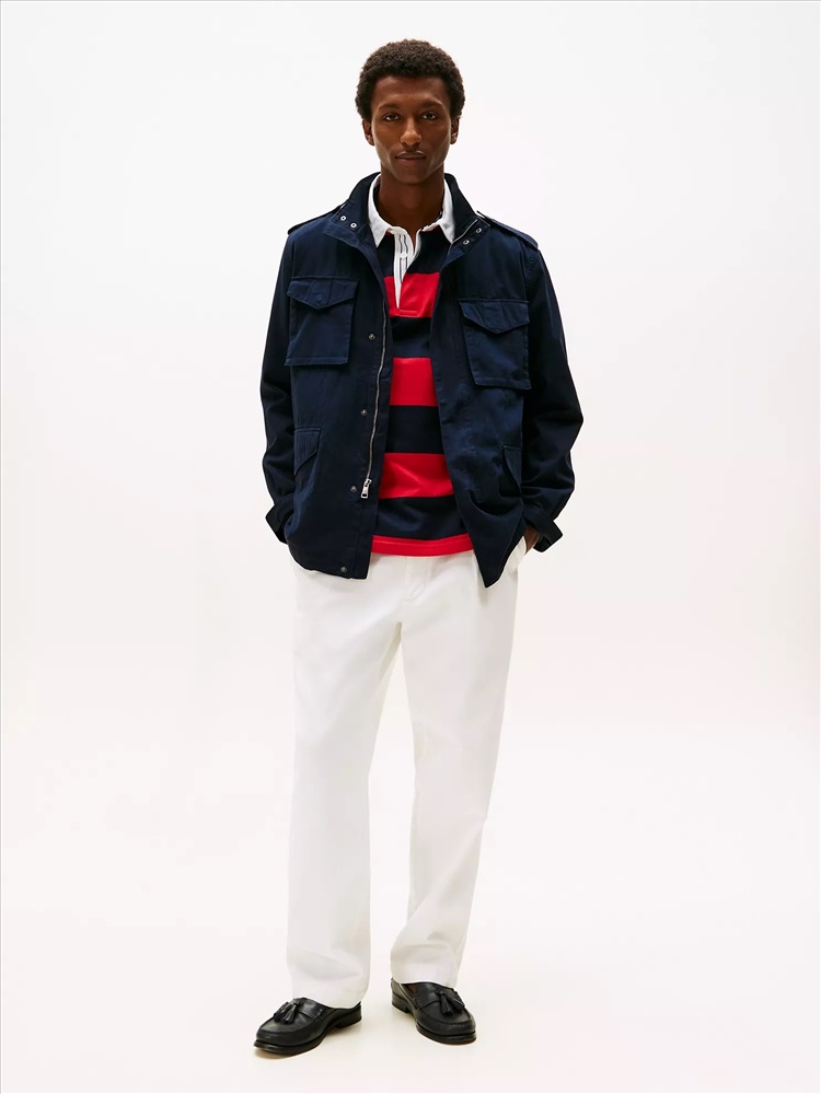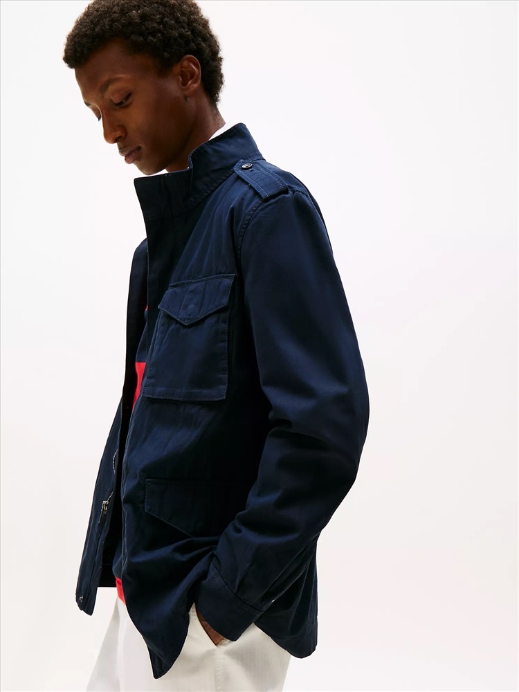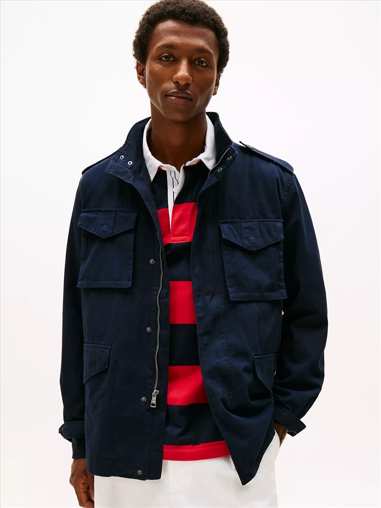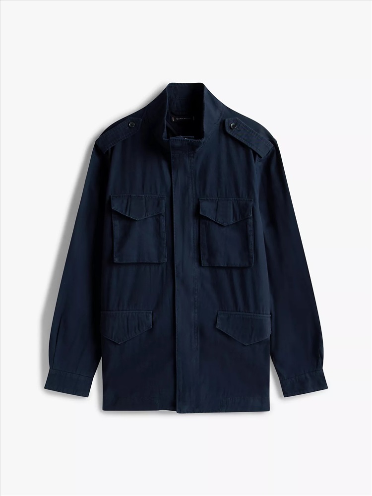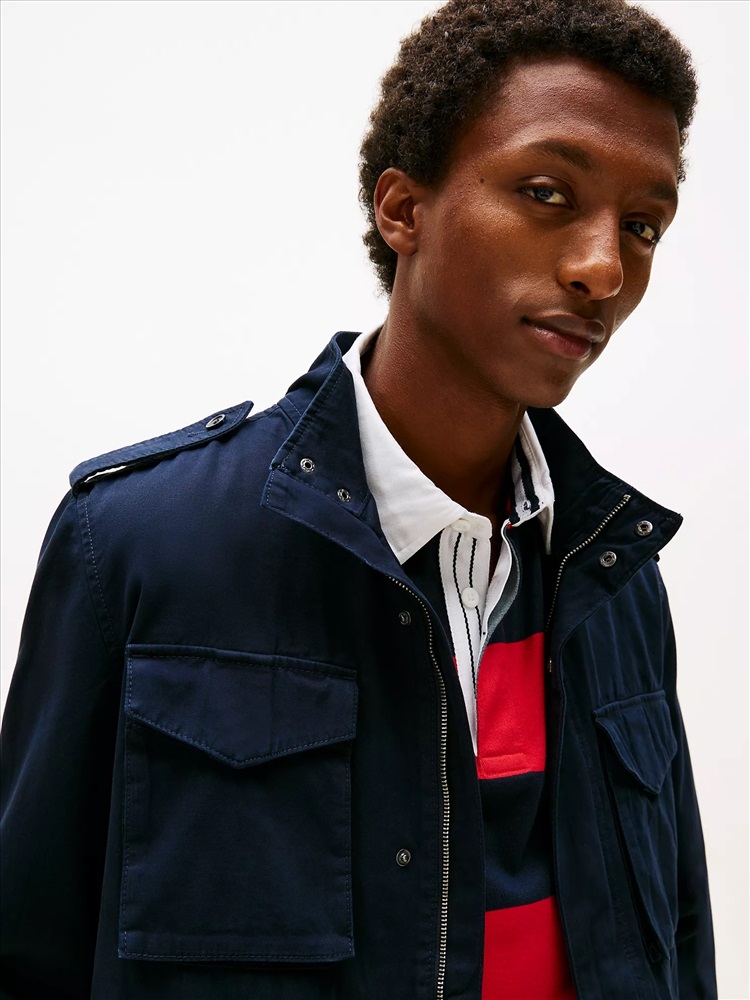 Tommy Hilfiger men's jacket. Inspired by vintage military style, our twill field jacket combines rugged durability with signature Tommy Hilfiger details. With utility pockets and a structured silhouette, it’s the perfect layer for an effortlessly cool, go-anywhere look.