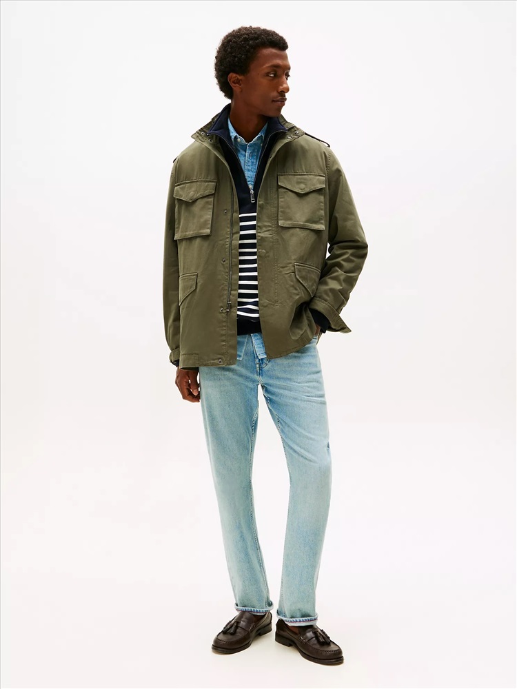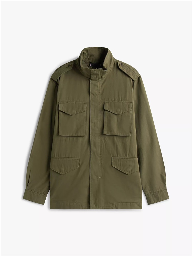 Tommy Hilfiger men's jacket. Inspired by vintage military style, our twill field jacket combines rugged durability with signature Tommy Hilfiger details. With utility pockets and a structured silhouette, it’s the perfect layer for an effortlessly cool, go-anywhere look.