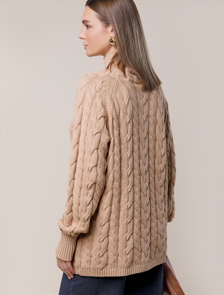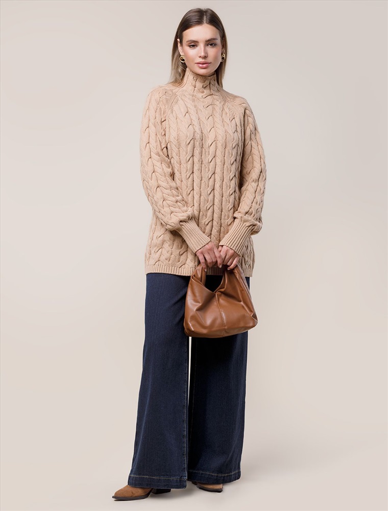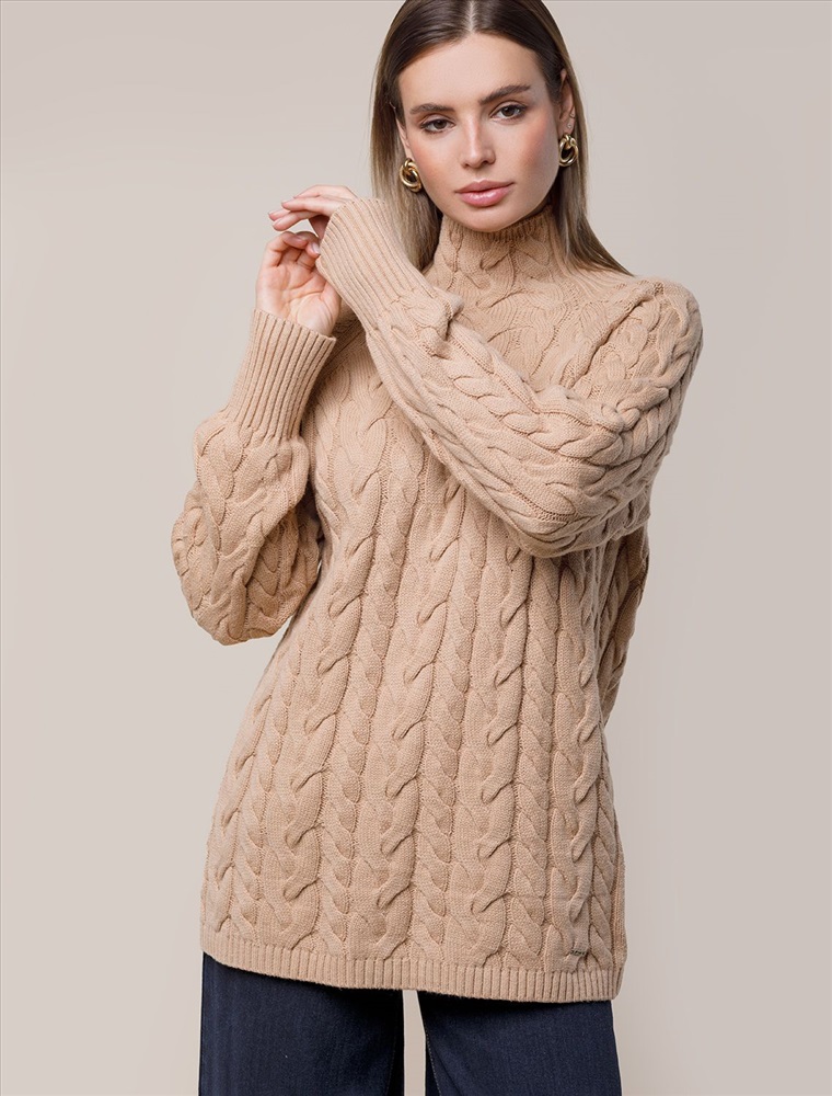 Параметры модели на первом фото: Рост 172, бюст 88, талия 64, бедра 88 Свитер выполнен из мягкой хлопковой пряжи фактурной вязки с добавлением акрила. Удлиненная модель силуэта over-size с воротом-стойка и узором косы во всю длину. Хорошо поддерживает тепло, при этом не перегревая тело. Сохраняет первоначальный внешний вид даже после множества стирок. Свободный силуэт позволяет носить изделие на футболку или рубашку с любым низом. Из украшений металлический логотип бренда.