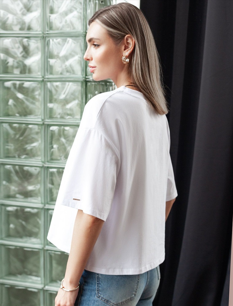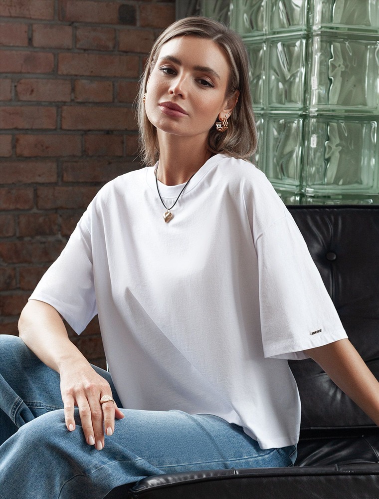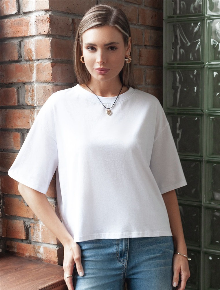 Базовая футболка из 100% хлопка. Укороченная модель свободной посадки идеально впишется в повседненвый гардероб. Изделие хорошо держит форму и обеспечивает комфортный микроклимат в течение дня.
