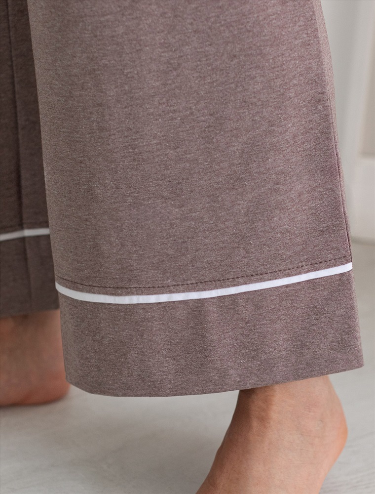 Размер товара на первом фото: 42 Укороченные брюки актуального темно-кофейного цвета из мягкого эластичного хлопка подарят вам комфорт в любое время дня. Прямой крой обеспечивает свободу движений и удобство при носке. Материал приятен на ощупь, хорошо пропускает воздух и позволяет коже дышать, делая эти брюки идеальным выбором для повседневной носки. Широкие брюки прекрасно подойдут на женщин с фигурой плюс сайз, на высокий рост и на девушек низкого роста, создут гармоничный образ без стеснения движений. Представлены большие размеры. Контрастный кант по низу добавляет стильный акцент и возможность сочетать с белыми футболками нашего бренда. Эти брючки идеально подойдут тем, кто ищет стильное решение с учетом комфорта и удобства, в них вы будете женственны и утонченны даже в домашней обстановке. Комментарии к товару