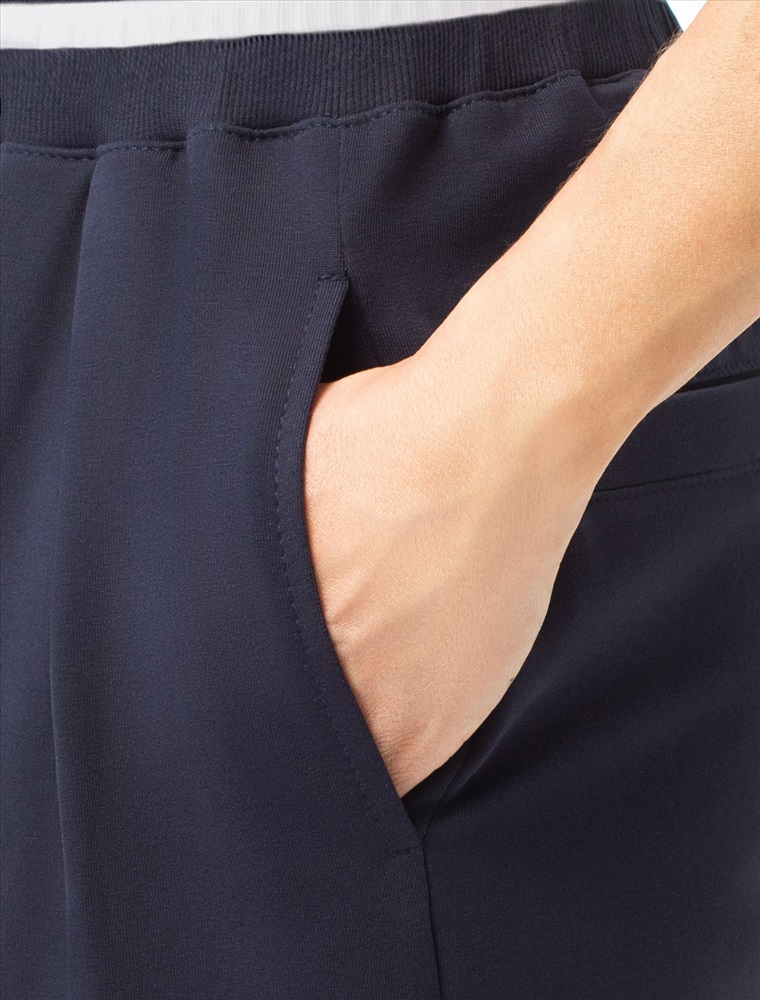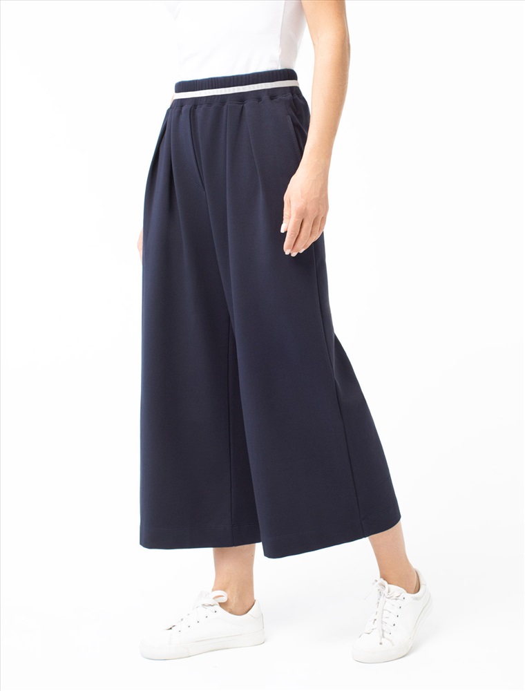 Состав: 95%Хлопок 5%ПУ Свободные брюки прямого силуэта выполнены из эластичного футера двухнитки. Длина изделия до щиколотки. В боковых швах расположены карманы. Внутренняя часть кармана из тонкого хлопка в тон полотна. Модель дополнена эластичным поясом, с контрастной полосой и золотистым логотипом бренда. Сочетается в костюме с джемпером D49.083 и D49.086. Правила ухода: использовать жидкое моющее средство (гель для стирки), добавлять к нему кислородный пятновыводитель для цветных вещей, и салфетки (защита от окрашивания). Стирка при 30 градусах, отжим на максимальных оборотах.