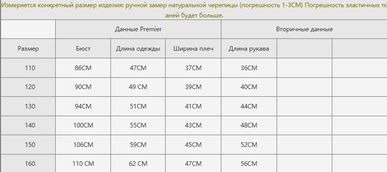 Размер: 110, 120, 130, 140, 150, 160
