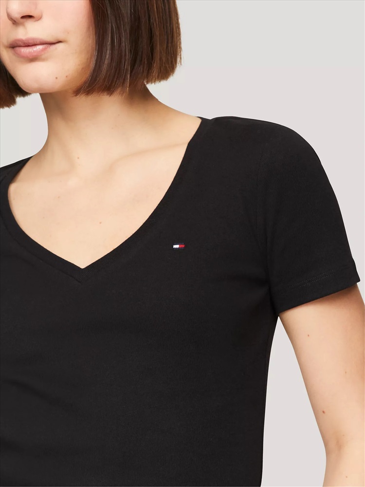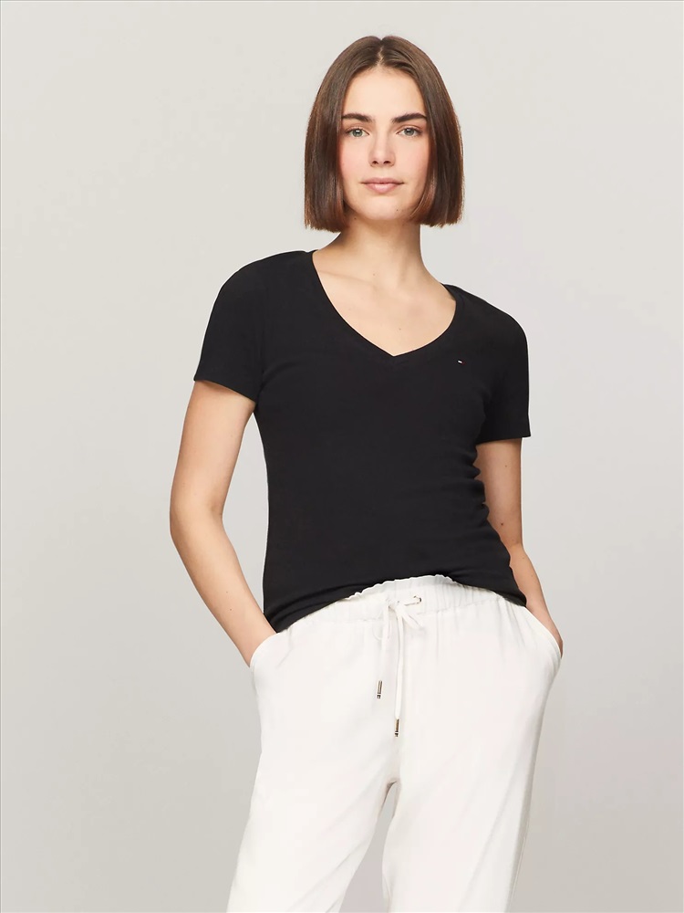Tommy Hilfiger women's T-shirt. Made from soft, comfortable medium weight cotton, our Favorite Tees are designed to fit your form. Another reason to love them? They layer just as easily under a blazer as they do a zip hoodie, and work as a standalone piece.