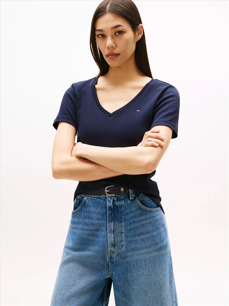 Tommy Hilfiger women's T-shirt. Made from soft, medium-weight cotton, our Favorite Tees are designed to fit your form. Another reason to love them? They layer just as easily under a blazer as they do a zip hoodie.
