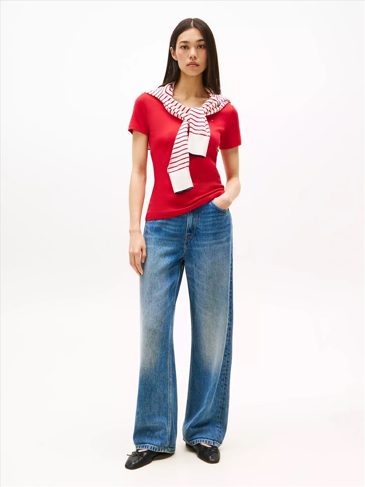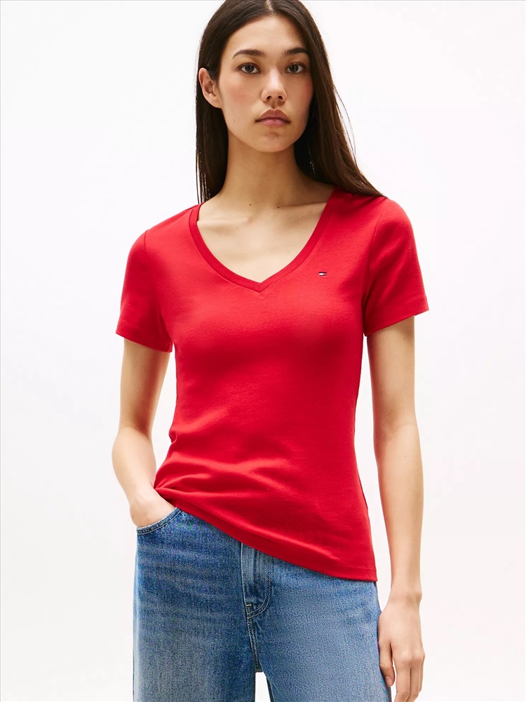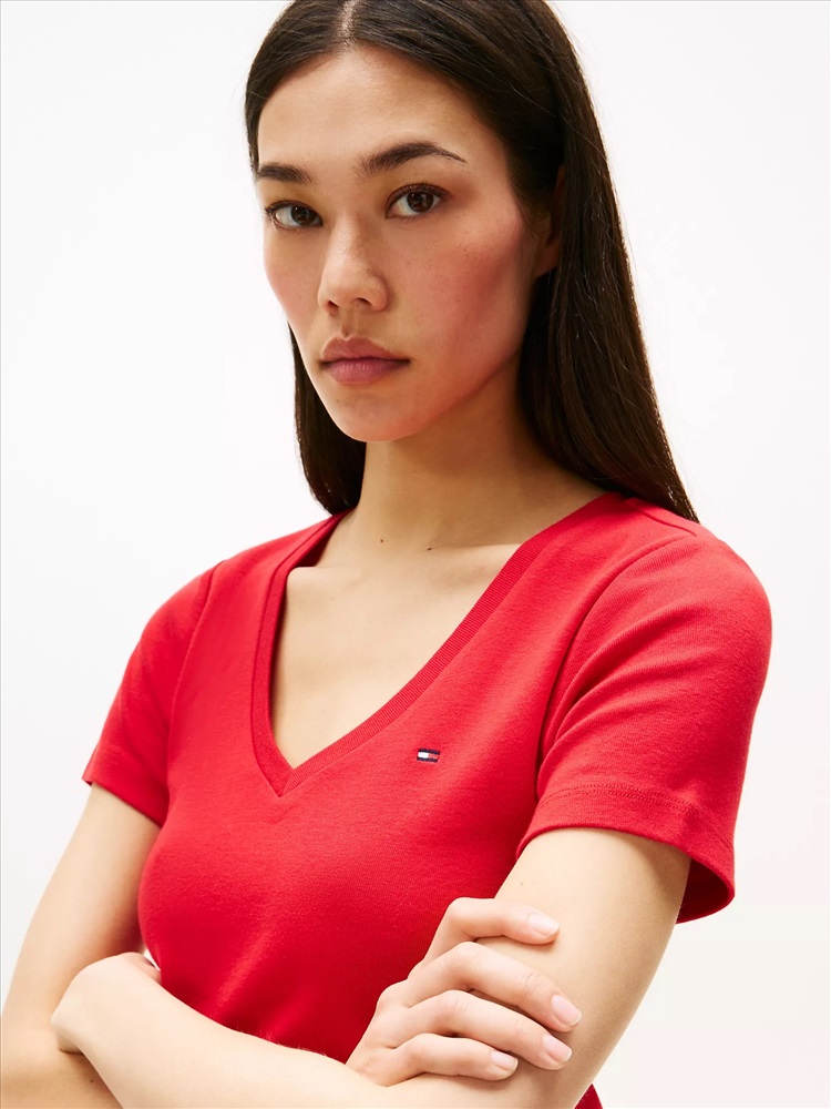 Tommy Hilfiger women's T-shirt. Made from soft, medium-weight cotton, our Favorite Tees are designed to fit your form. Another reason to love them? They layer just as easily under a blazer as they do a zip hoodie.