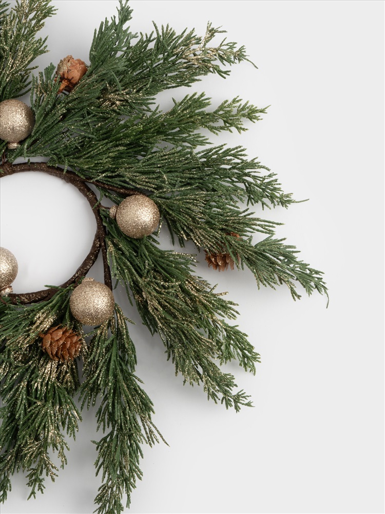 Венок декоративный, 10/40 см, пластик/пенопласт, Золотые шары, Interior natural