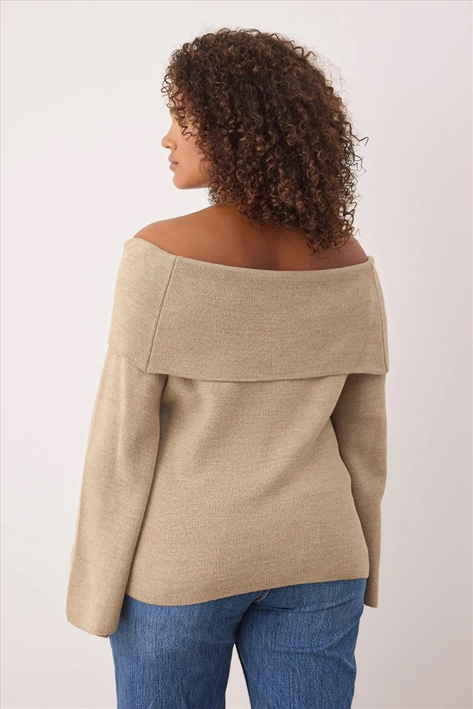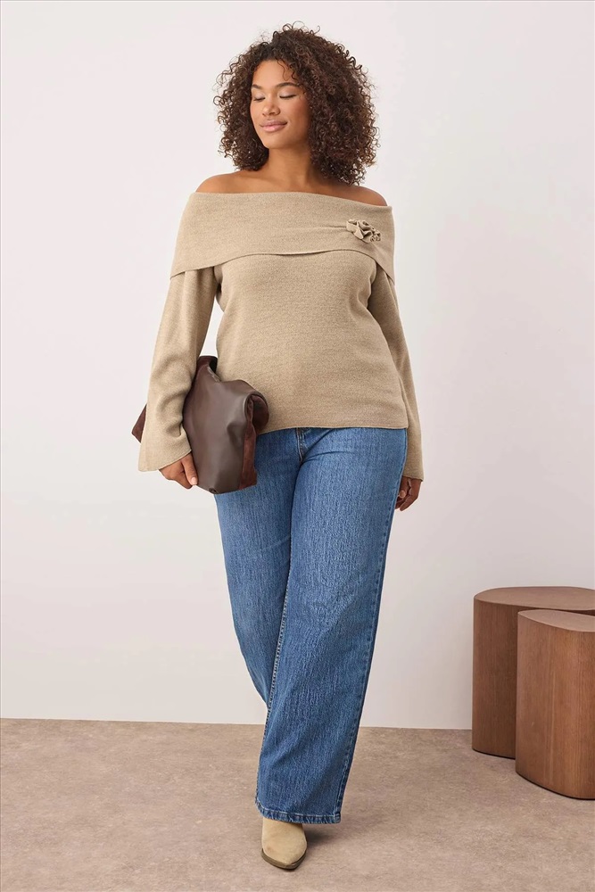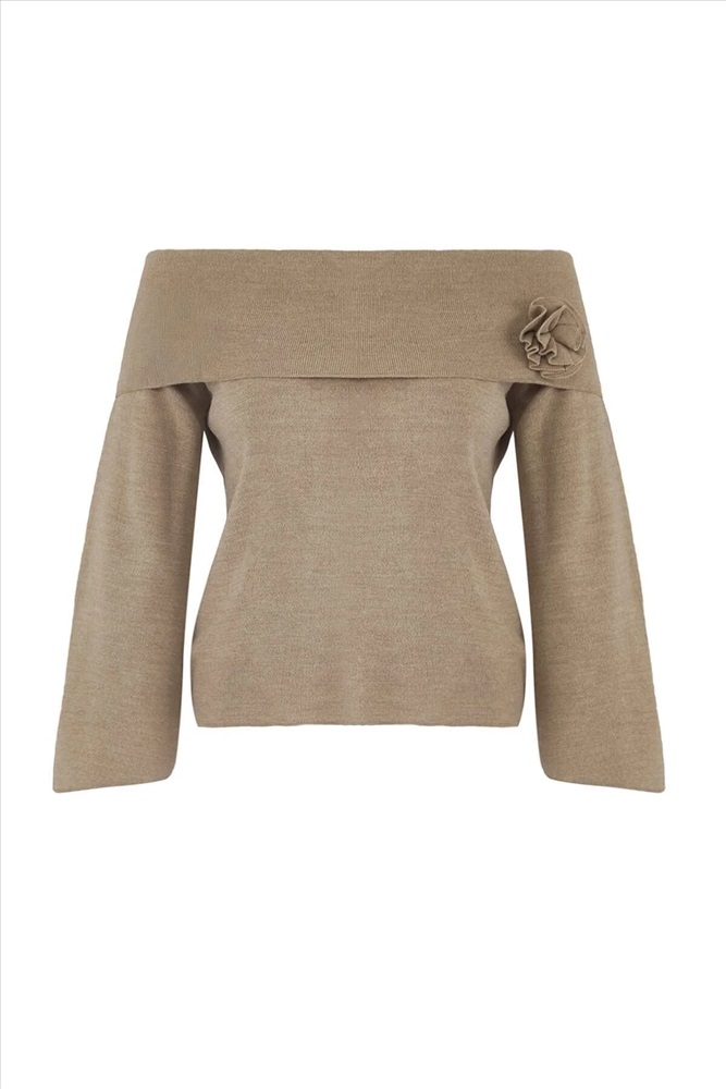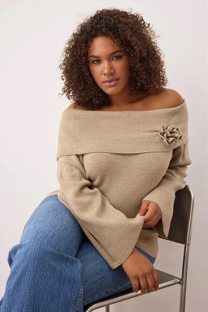 Vizon Carmen Yaka Çiçek Detaylı İnce Triko Kazak TBBAW26AN00037