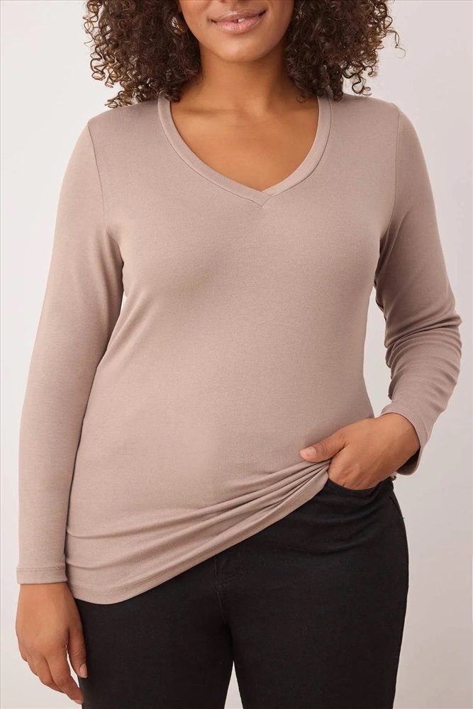 Vizon Premium Yumuşak Kumaşlı V Yaka Fitted/Vücuda Oturan Esnek Örme Büyük Beden Bluz TBBAW26AF00025