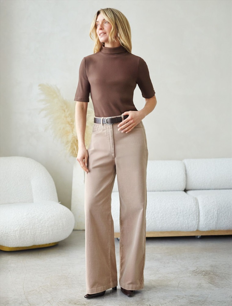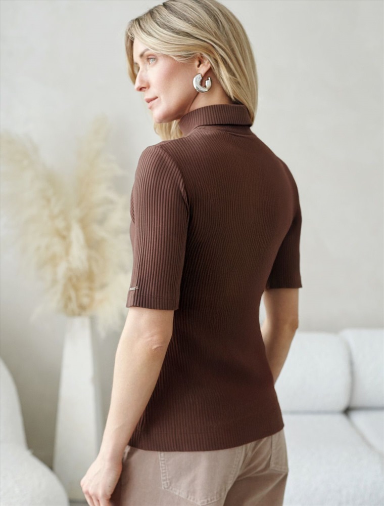 Водолазка с коротким рукавом выполнена из фактурного трикотажа в рубчик. Модель идеально сидит по фигуре не сковывая движения. Хлопковый трикотаж поддерживает оптимальную температуру тела, поэтому в изделии будет комфортно в течении всего дня. Наличие эластана в составе гарантирует формоустойчивости. Водолазка отлично впишется в деловой дресс-код и подойдет для повседневного аутфита.