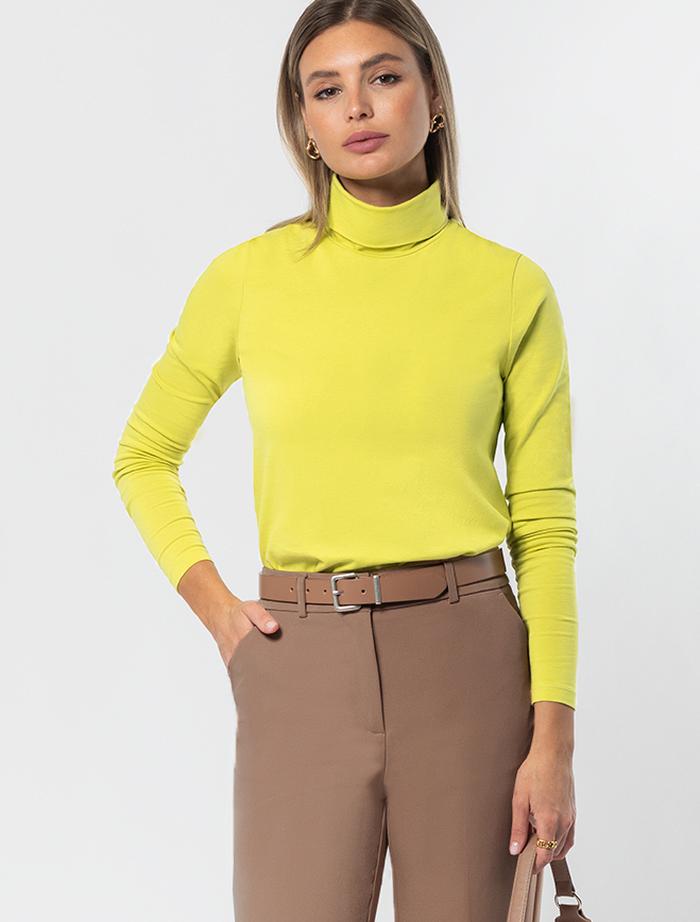 Яркая лаймовая водолазка выполнена из премиального хлопка с добавлением эластичных волокон. Гладкий трикотаж обеспечит гарантированный комфорт и удобство в использовании. Внизу изделия металлическая нашивка с логотипом бренда. Совет стилиста: водолазка может заменить рубашку в нестрогом офисном образе или подружиться с джинсами-трубами, жилетом и кедами в расслабленном повседневном наряде.