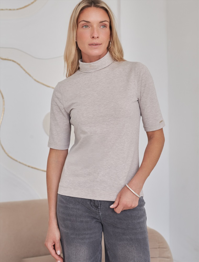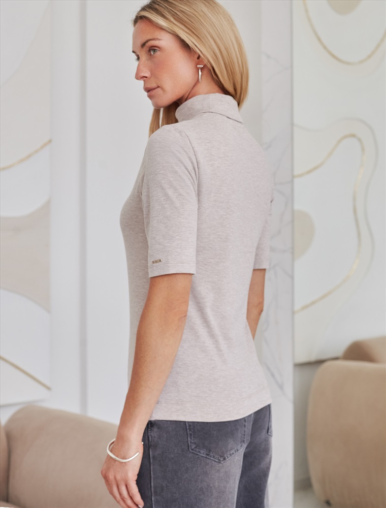 Водолазка с коротким рукавом выполнена из премиального хлопка с добавлением эластана. Гладкий трикотаж обеспечит гарантированный комфорт и удобство в использовании. Внизу изделия металлическая нашивка с логотипом бренда. Совет стилиста: водолазка может заменить рубашку в нестрогом офисном образе или подружиться с джинсами-трубами, жилетом и кедами в расслабленном повседневном наряде.