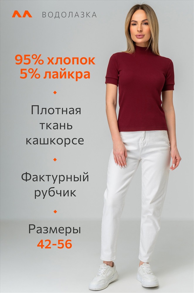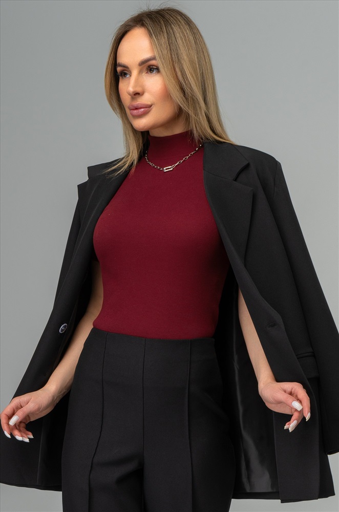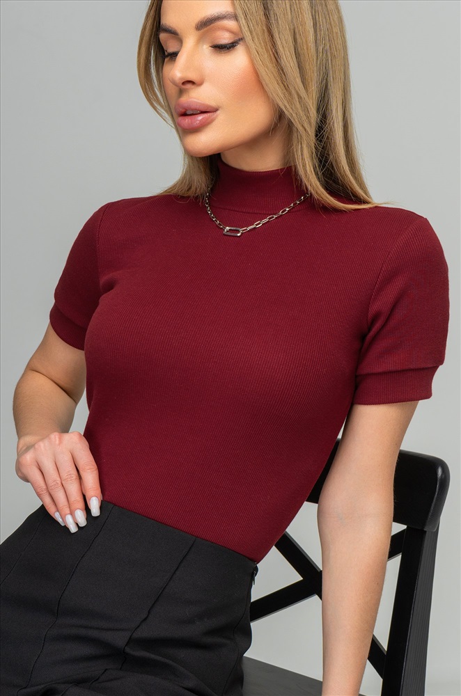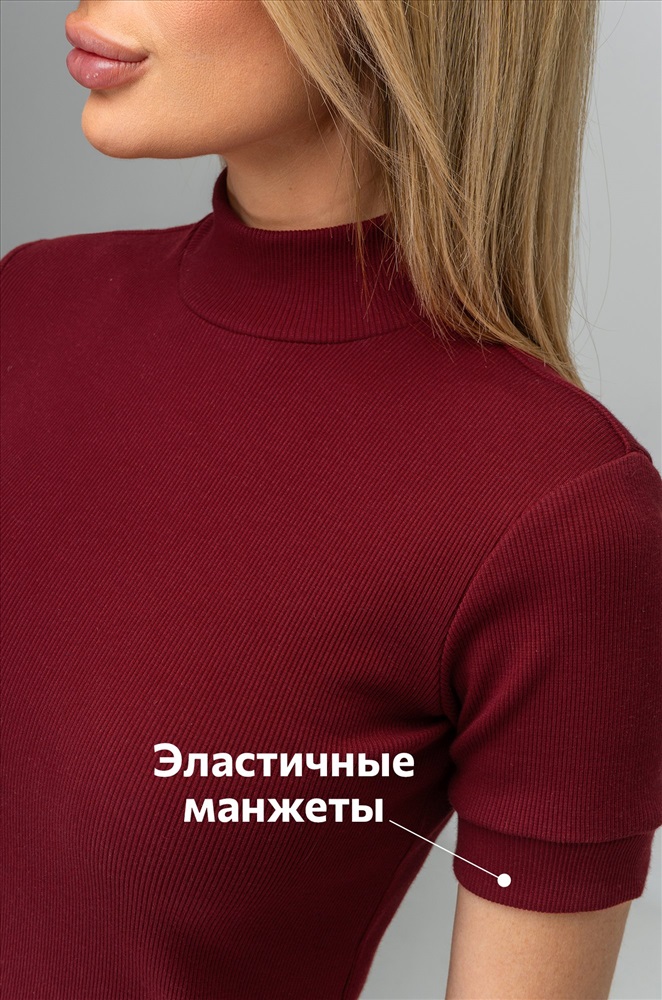 То чувство, когда в одной водолазке соединилось всё лучшее! Фактурная вязка в рубчик, короткий рукав и воротник-стойка – все для того, чтобы выглядеть лаконично и роскошно! Женская бордовая водолазка выполнена из плотной ткани кашкорсе.