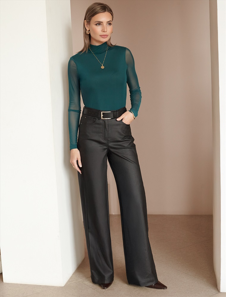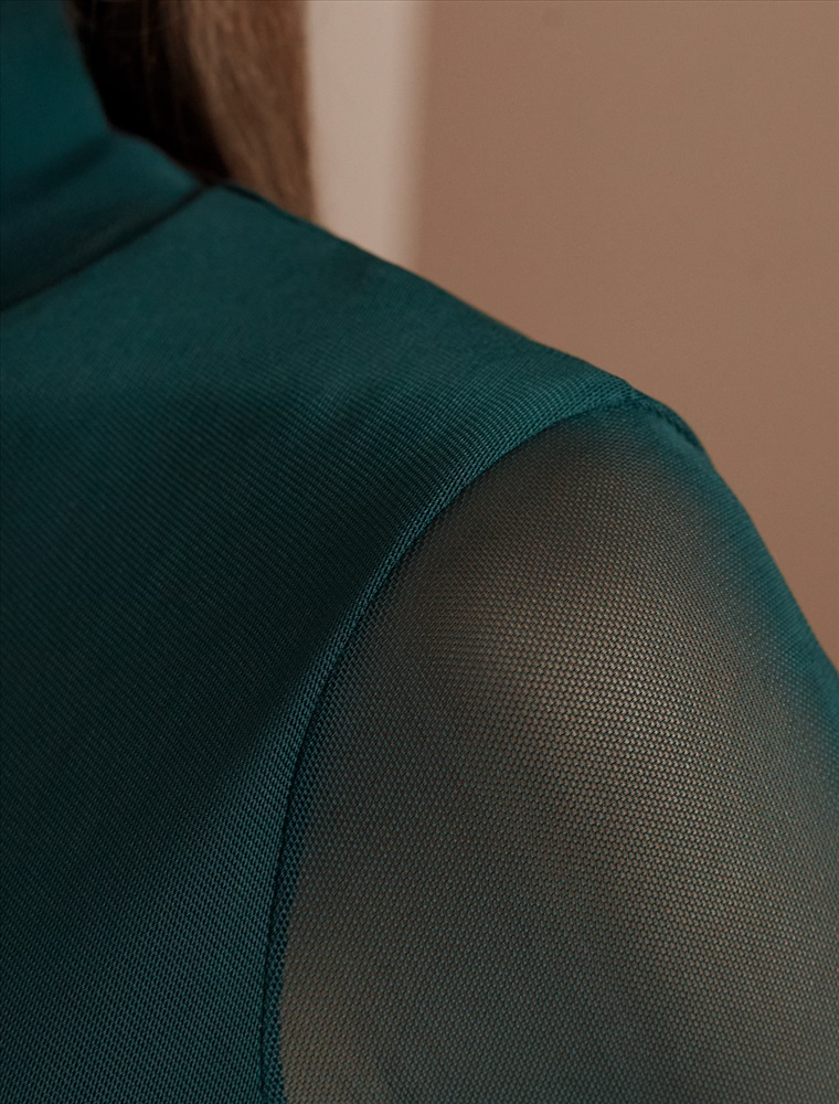 Элегантная модель из мягкой вискозы с эффектными деталями! Основная часть водолазки изумрудного цвета выполнена из плотного вискозного трикотажа, обеспечивающего комфорт, в то время как рукава из тонкой сетки создают стильный контраст. Двойной воротник с отворотом добавляет образу многослойность и универсальность. Модель отличается безупречной посадкой по фигуре!