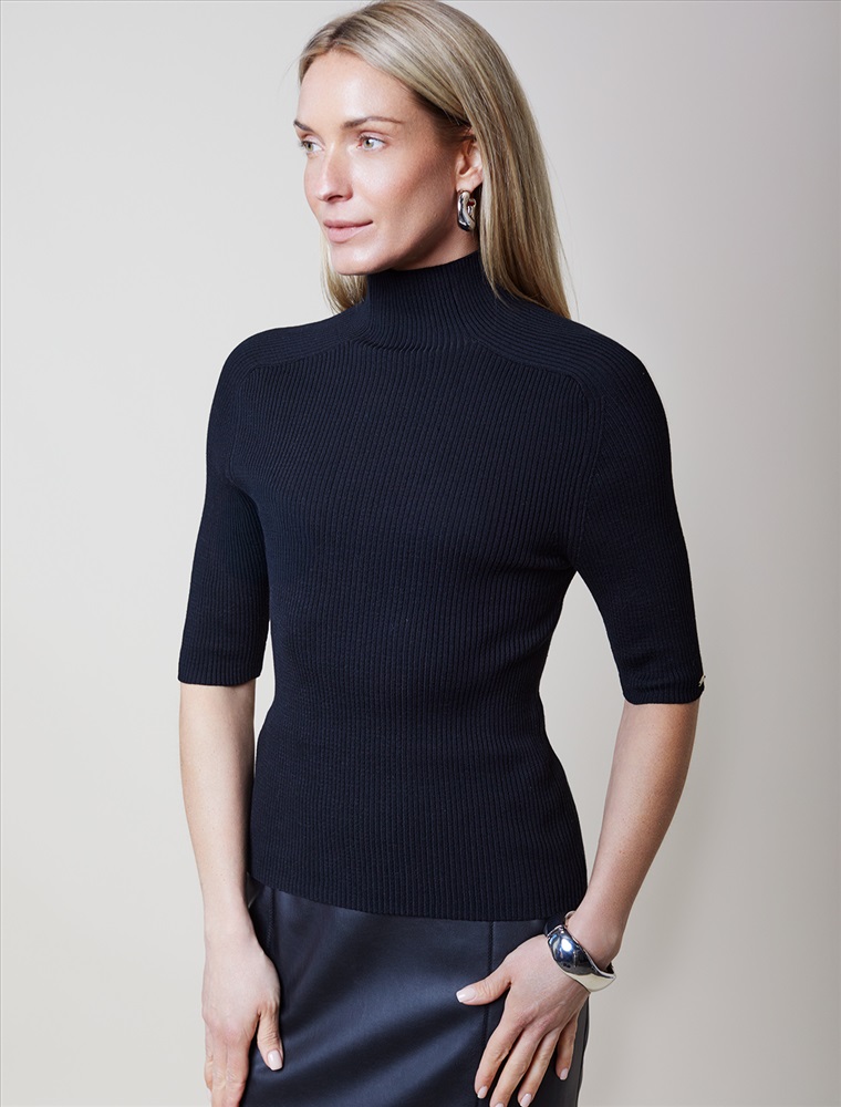 Параметры модели на первом фото: Рост 172, бюст 88, талия 64, бедра 88 Размер товара на первом фото: 42 Водолазка тонкой вязки в рубчик выполнена из хлопка. Лаконичная модель с коротким рукавом дополнена металлическим логотипом бренда. Изделие идеально сидит по фигуре и не сковывает движений. Мягкая пряжа очень приятная к телу не колется и сохраняет тепло при этом не перегревая. Комментарии к товару