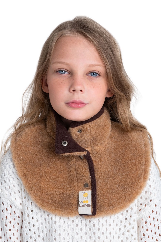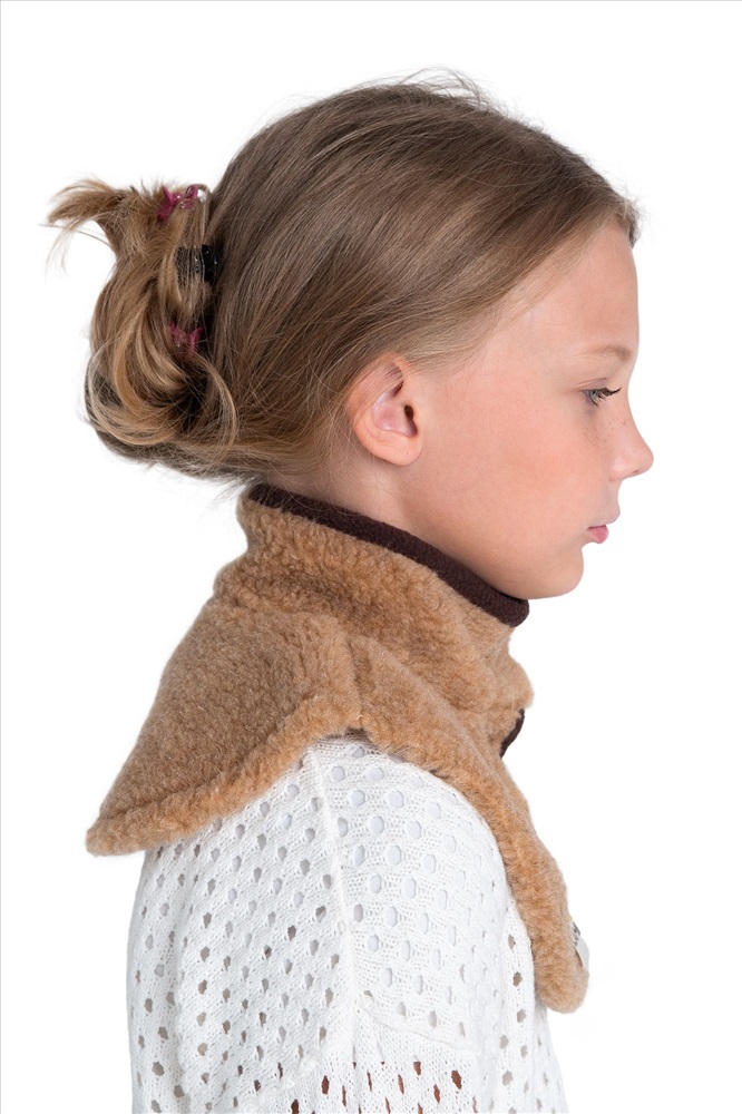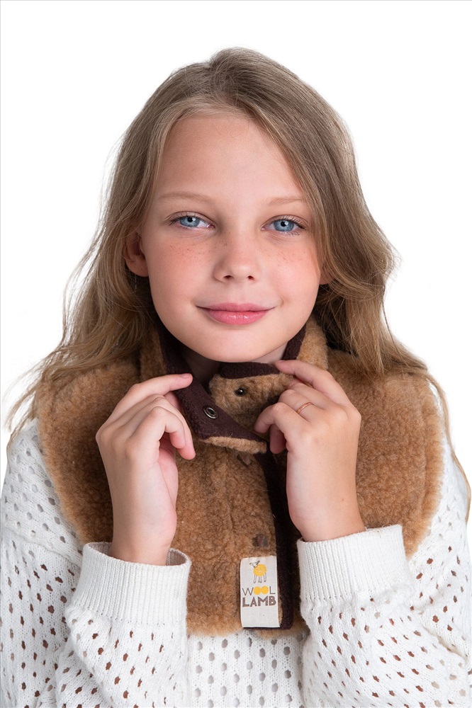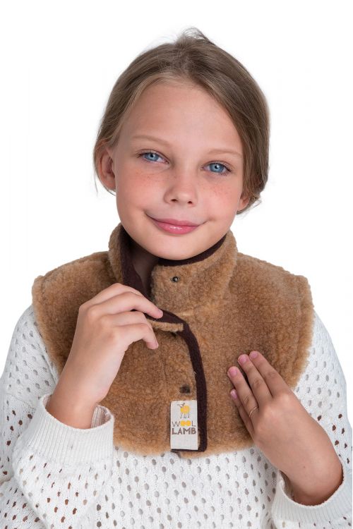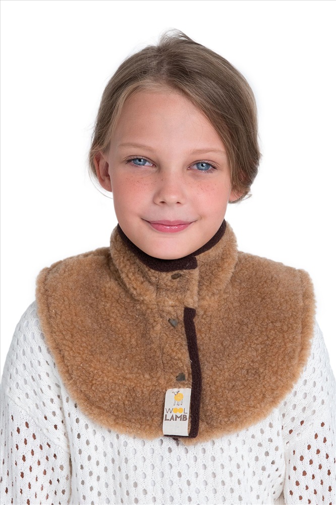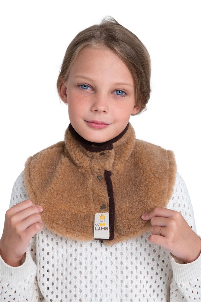 Манишка ДЕТСКАЯ изготовлена из натуральной шерсти, подкладка флис, металлические кнопки, полностью расстегивается, теплая, комфортная, удобно использовать., ВОРОТНИК-МАНИШКА, Воротник-манишка из натуральной овечьей шерсти – самый лучший способ защиты области шеи, горла, верхнего отдела позвоночника., Манишка выполнена из уникального материала – вязанный шерстяной мех на трикотажной основе. Высота ворса 5-7 мм, высокая эластичность и мягкость материала. Она мягко облегает шею, способствует глубокому прогреванию, сохранению тепла.  Благодаря широкой площади охватывает также грудную область и верхнюю часть спины., -оказывает массажный эффект, улучшает микроциркуляции крови в области позвонков.    - профилактика простуды и воспаления горла, при ангине    - профилактика остеохондроза шейных позвонков    - защита горла и груди при работах на холоде, при влажности и сквозняках