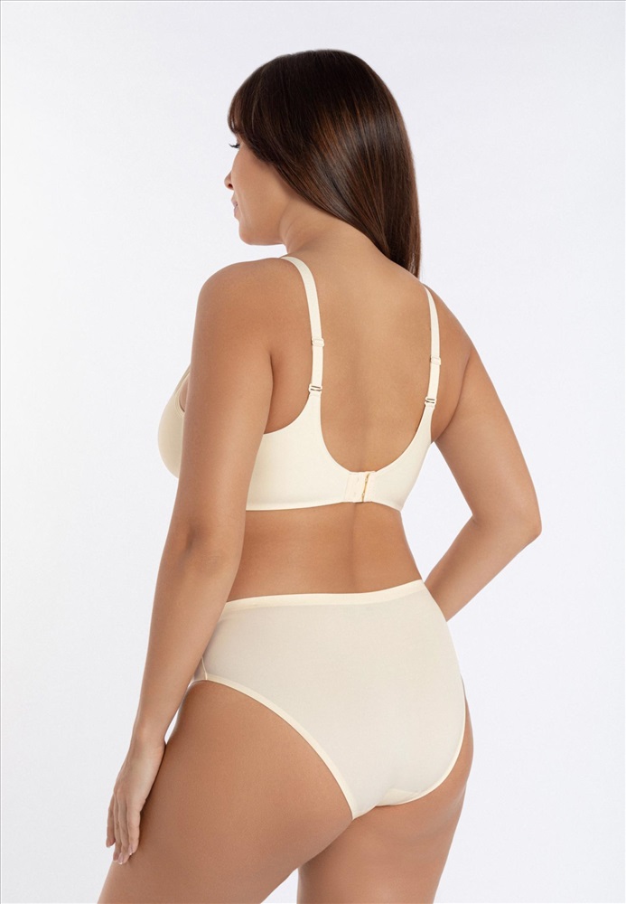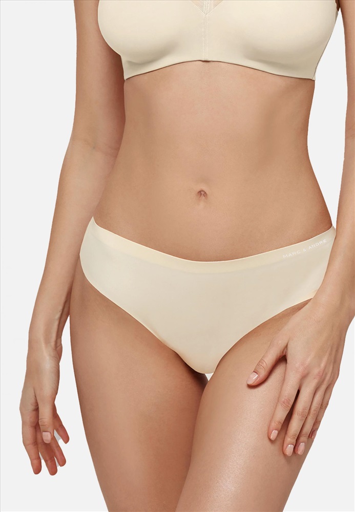 57% полиамид, 37% эластан, 6% хлопок Бесшовные трусы со средней линией талии. Технология «Sewfree».