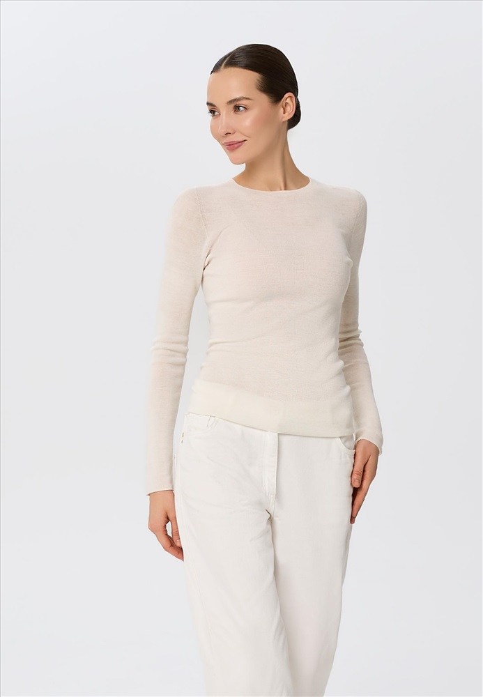 100% шерсть мериноса Базовый бесшовный лонгслив. С круглым вырезом горловины. Длина до бедер. Прилегающий силуэт. Эргономичный материал из 100% шерсти мериноса идеально подходит для прохладной погоды.