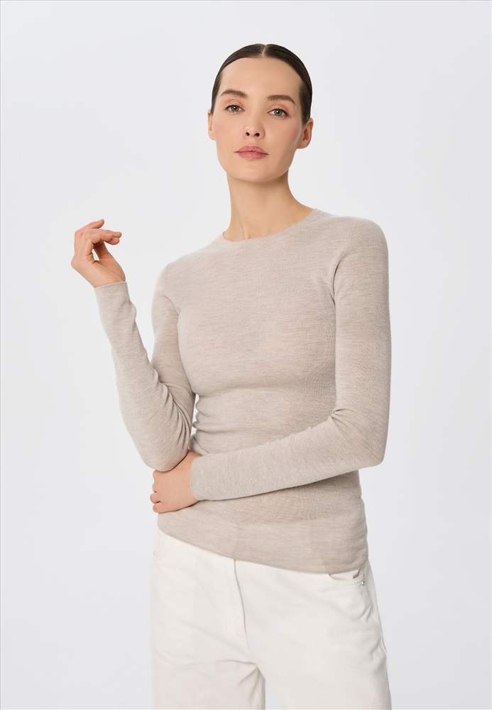 100% шерсть мериноса Базовый бесшовный лонгслив. С круглым вырезом горловины. Длина до бедер. Прилегающий силуэт. Эргономичный материал из 100% шерсти мериноса идеально подходит для прохладной погоды.