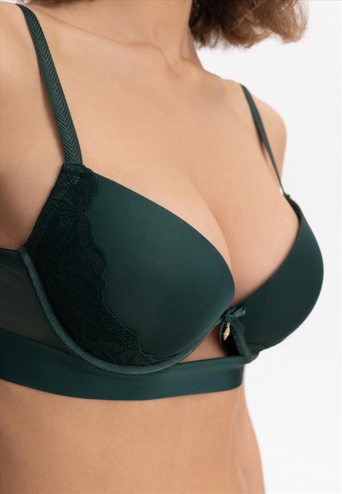 85% полиамид, 15% эластан Бюстгальтер на каркасной поддержке с формованной чашкой и встроенным «пуш-ап». Широкий стан с эластичной резинкой внутри обеспечивает дополнительную поддержку. Боковые детали выполнены из сетки. Спинка декорирована кружевом.