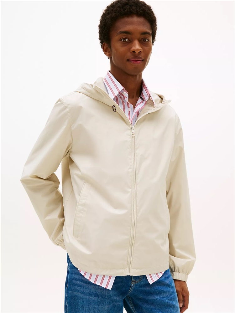 Tommy Hilfiger men's jacket. Our lightweight hooded windbreaker is just the thing for unpredictable transitional weather. Made from durable, water-repellent ripstop, this versatile outer layer is also windproof and easy to clean.