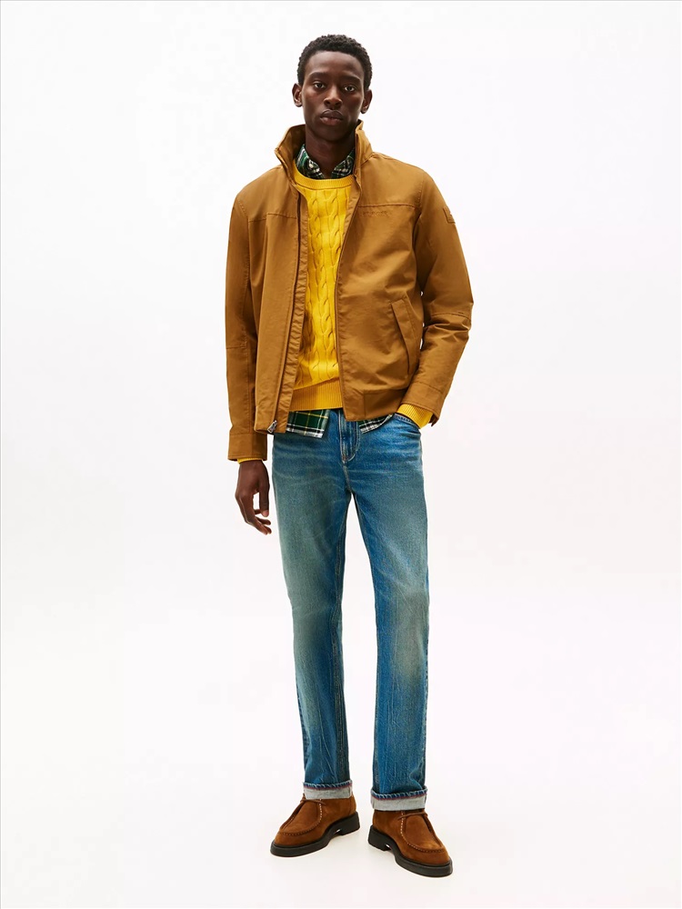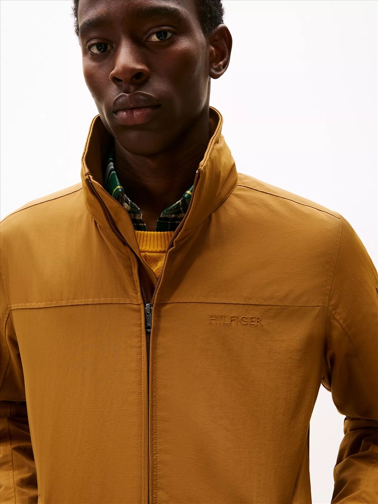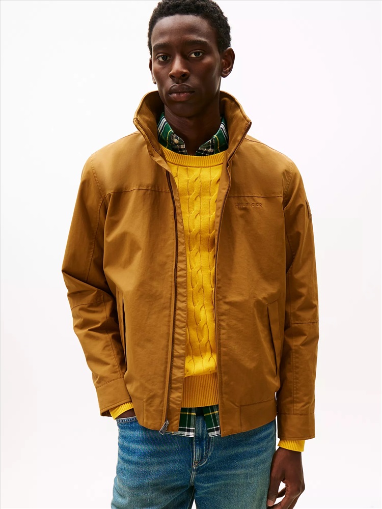 Tommy Hilfiger men's jacket. Our water-resistant regatta jacket blends form and function in classic Tommy style. Designed with a concealed hood under the collar, this outerwear layer is light, super versatile and ready to take on whatever Mother Nature throws at you.