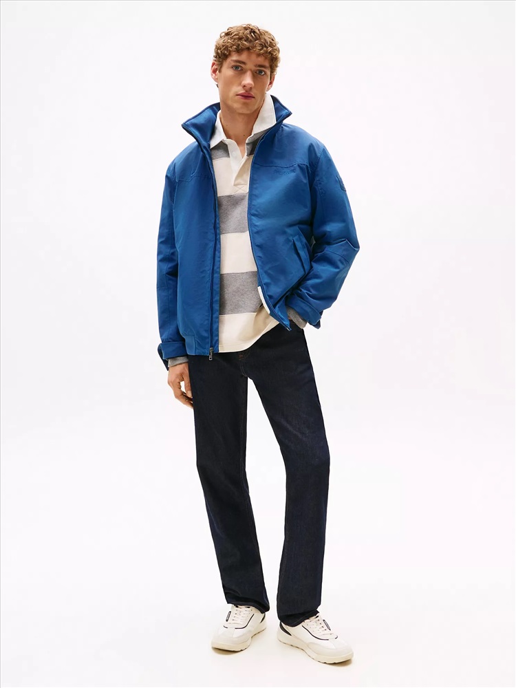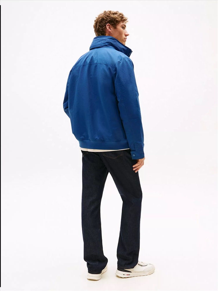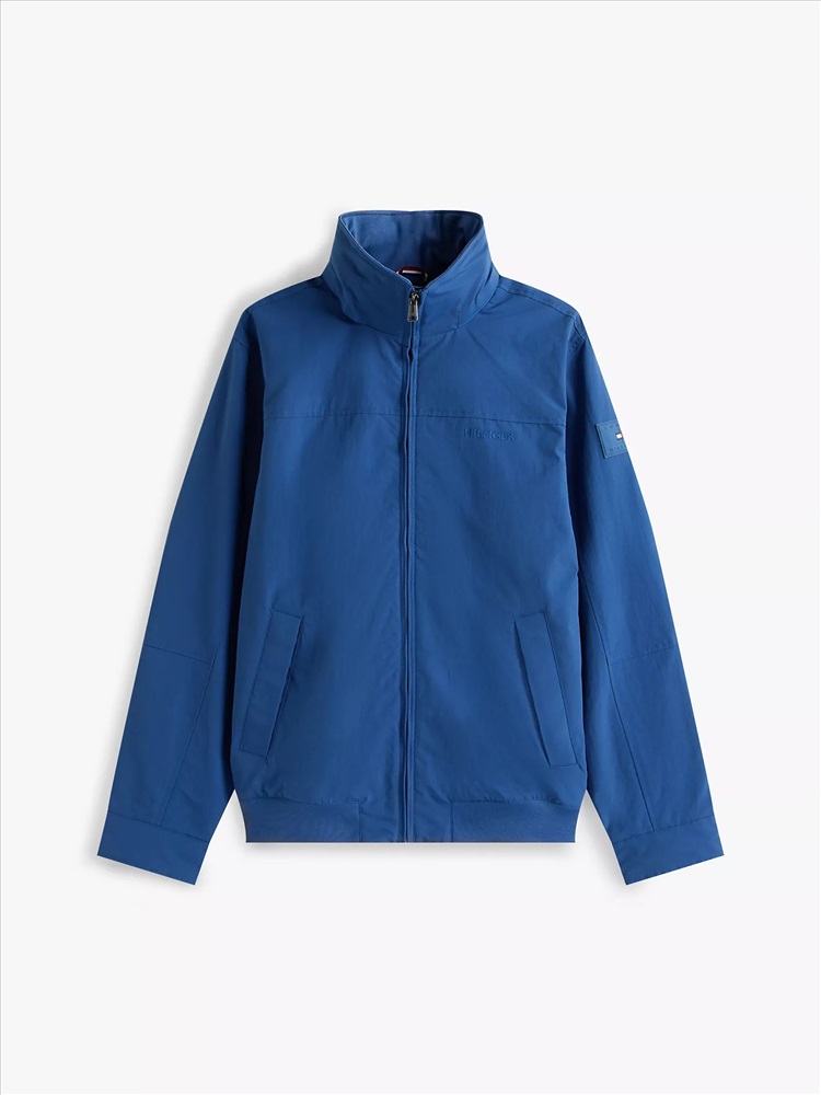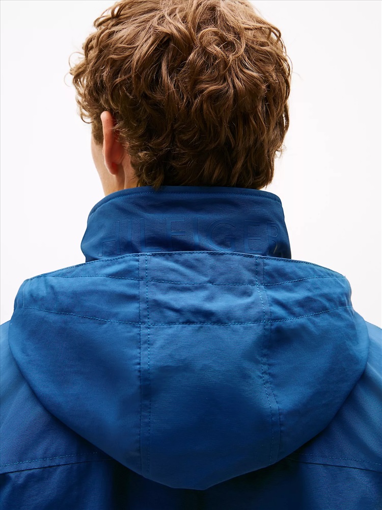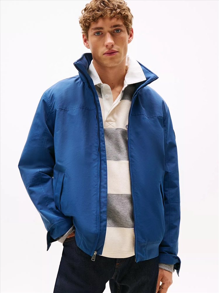 Tommy Hilfiger men's jacket. Our water-resistant regatta jacket blends form and function in classic Tommy style. Designed with a concealed hood under the collar, this outerwear layer is light, super versatile and ready to take on whatever Mother Nature throws at you.