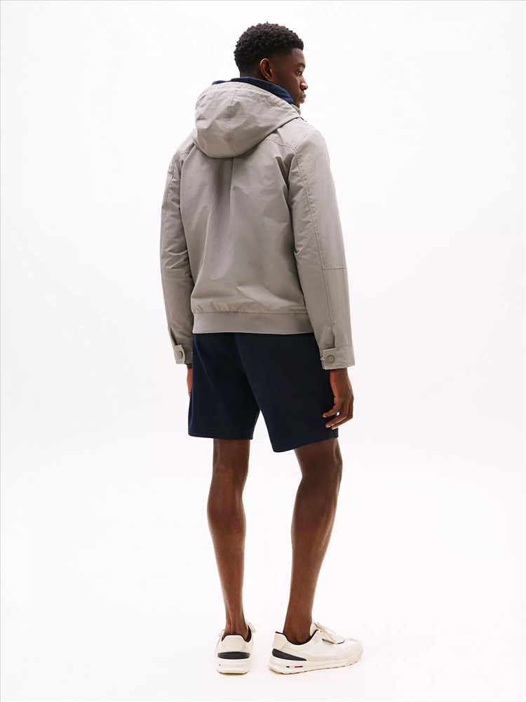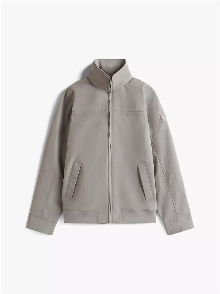 Tommy Hilfiger men's jacket. Our water-resistant regatta jacket blends form and function in classic Tommy style. Designed with a concealed hood under the collar, this outerwear layer is light, super versatile and ready to take on whatever Mother Nature throws at you.