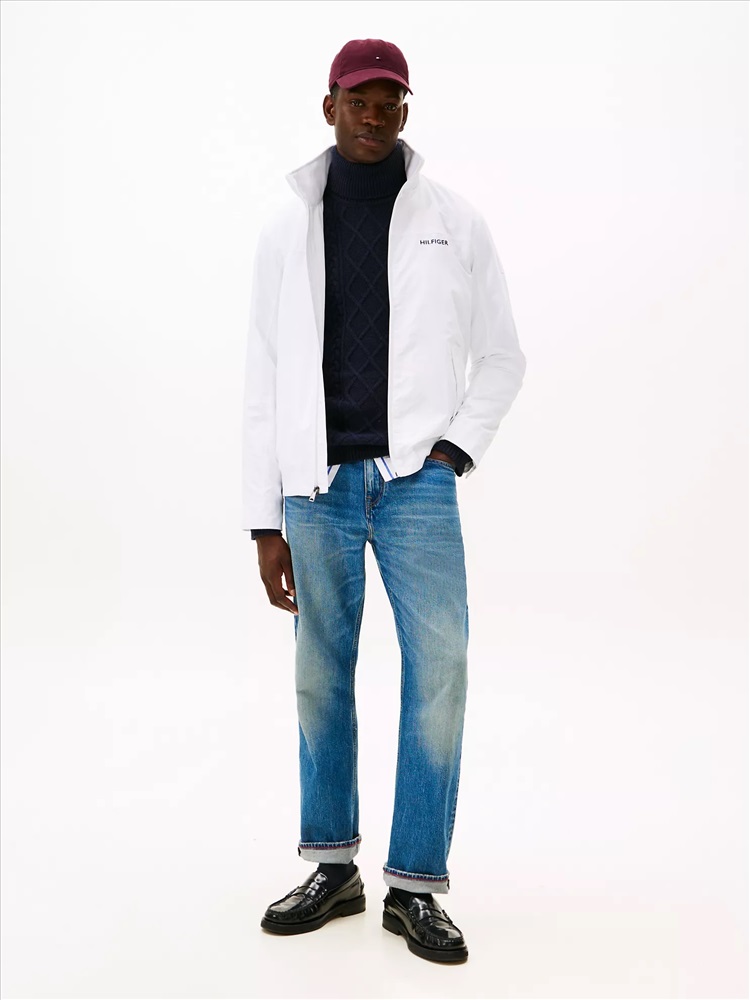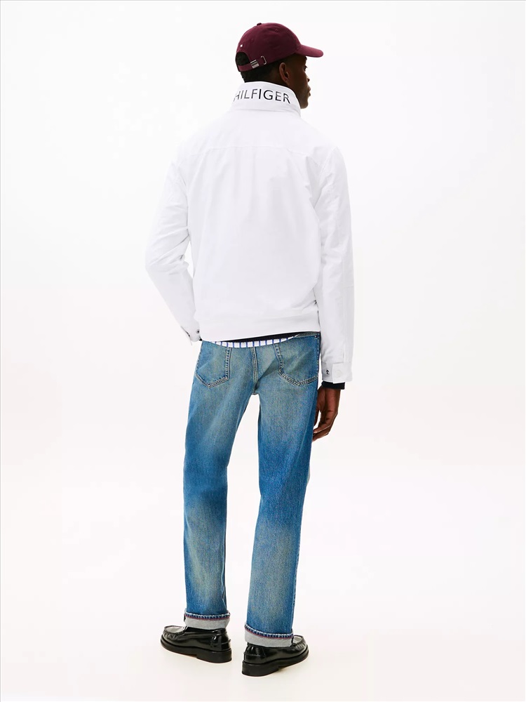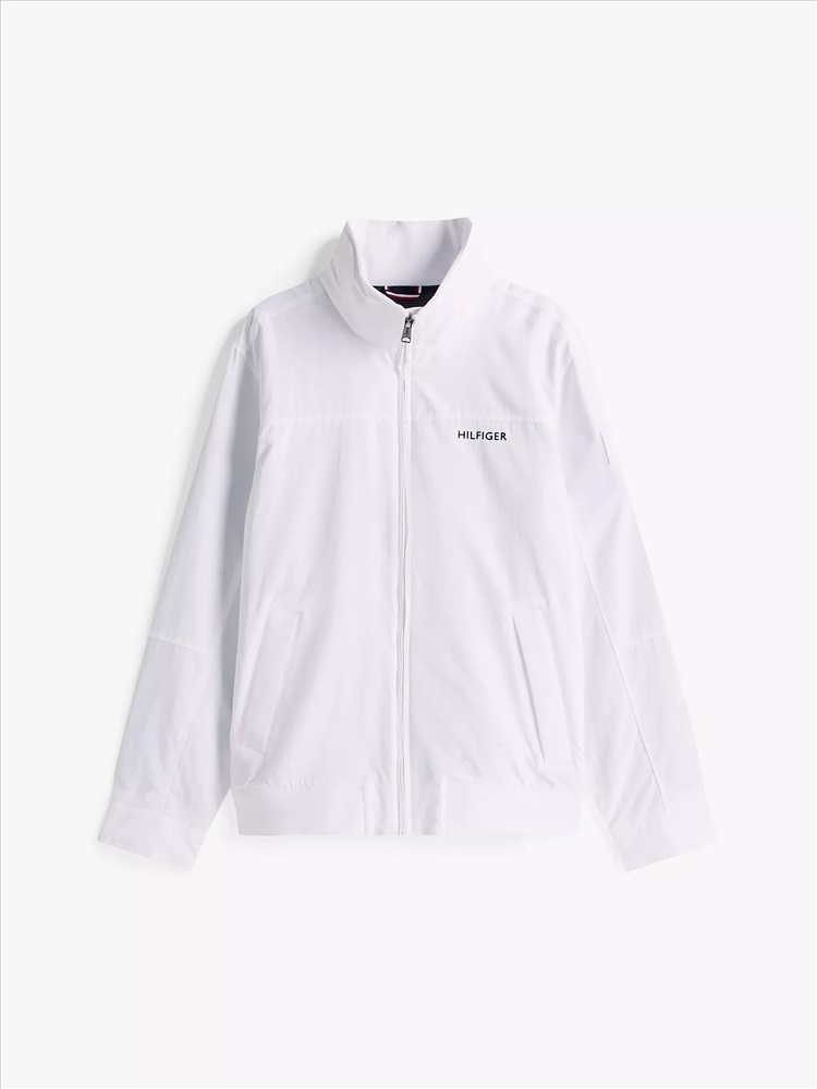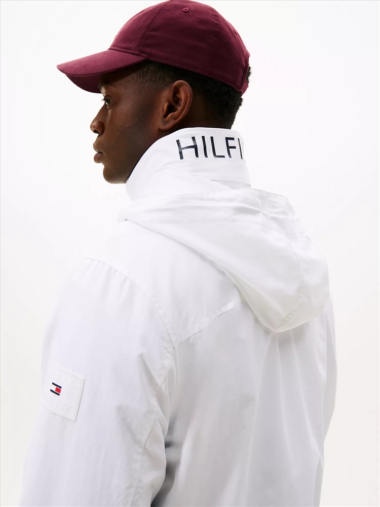 Tommy Hilfiger men's jacket. Our water-resistant regatta jacket blends form and function in classic Tommy style. Designed with a concealed hood under the collar, this outerwear layer is light, super versatile and ready to take on whatever Mother Nature throws at you.