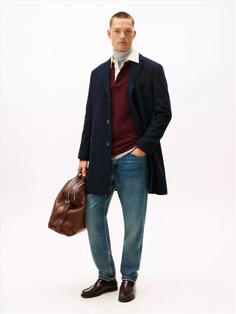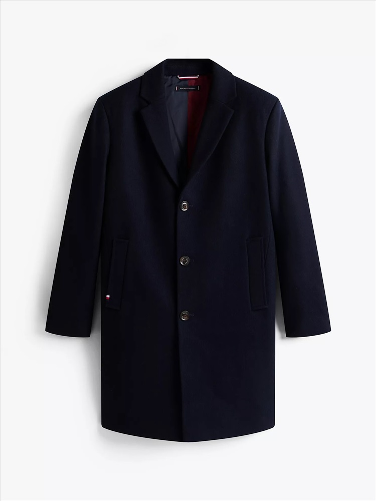 Tommy Hilfiger men's coat. Casual yet polished, our coat transitions from weekday to weekend wear with ease. Made from a warm wool blend, this timeless style will live in your wardrobe for years.