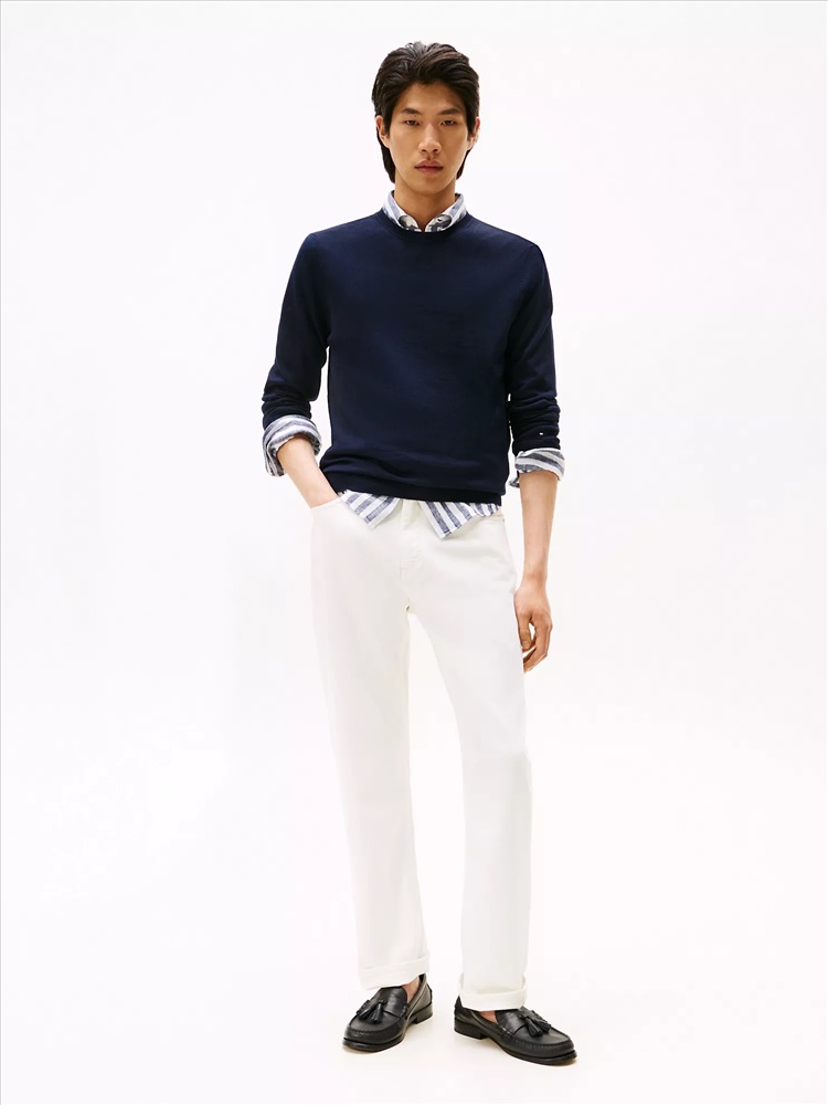 Tommy Hilfiger men's sweater. Our classic crewneck sweater is made from premium wool for softness, warmth and an elevated feel. It's a versatile look that will live in your wardrobe for years.