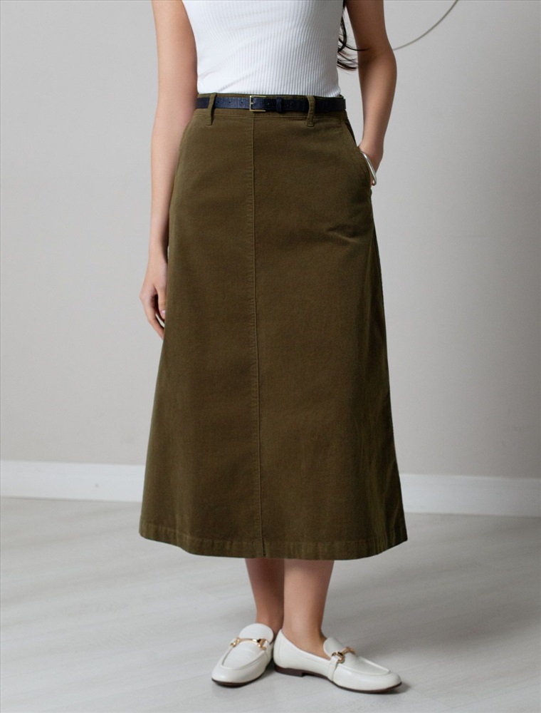 Размер товара на первом фото: 42 Юбка-миди трапециевидного силуэта выполнена из мягкого хлопкового микро-вельвета с добавлением эластана. Изделие комфортно садится по фигуре и не сковывает движения. Модель дополнена высококачественной фурнитурой с фирменным логотипом бренда. Хорошо комбинируется с вязаным трикотажем, блузками и денимом.Также прекрасно станет альтернативой деловым низам в нестрогом офисном дресс-коде.