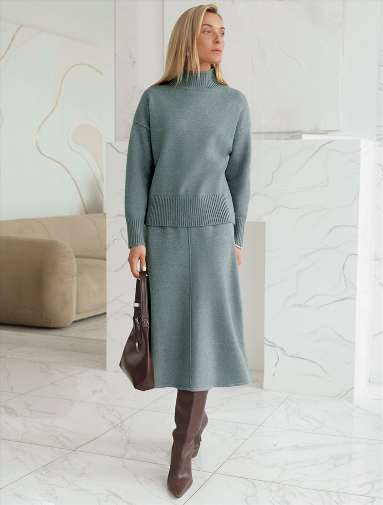 Размер товара на первом фото: 42 Юбка А-силуэта выполнена из мягкой пряжи с кашемиром. Вязаный кант вертикально проходящий по всему изделию, визуально стройнит и вытягивает силуэт. Мягкая пряжа очень приятная к телу, поддержит комфорт на протяжении всего дня, при этом не перегревая. Сочетается в костюме с D31.141, D31.147, D31.148, D31.149, D34.202, D34.203, D34.205, D34.206, D37.017, D37.018, D39.358, D39.359, D39.360 Комментарии к товару