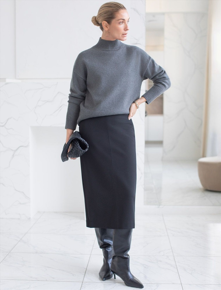 Юбка прямого кроя выполнена из джерси - плотность 400г/м2. Застежка на молнию и потайную пуговицу. Изделие дополнено высоким разрезом сзади и декоративным швом спереди. Изделие хорошо держит форму, отлично тянется и почти не мнется во время использования. Идеальный вариант в офис или в повседневный классический стиль.
