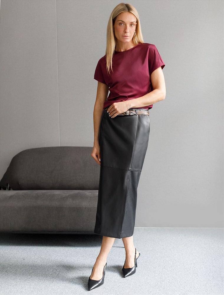 Плотность: 320 Г/м2 Размер товара на первом фото: 42 Идеальный выбор для дерзкого и женственного образа. Облегающий силуэт юбки-карандаш в черном цвете подчеркивает фигуру, а разрез сбоку чуть выше колена добавляет нотку соблазна и удобство при ходьбе. Мягкая обтачка пояса с изнаночной стороны обеспечивает комфорт. Качественная искусственная кожа выглядит дорого, сохраняя эластичность и износостойкость. Комментарии к товару