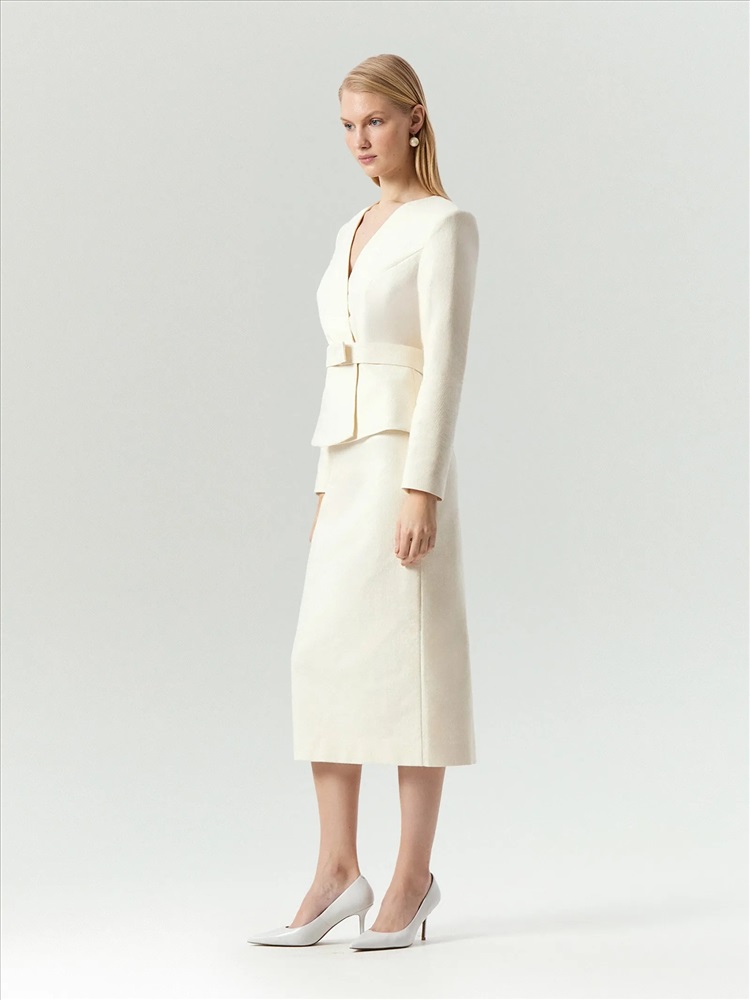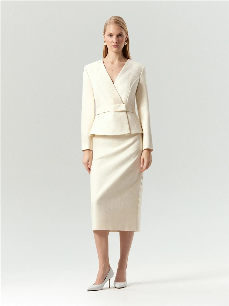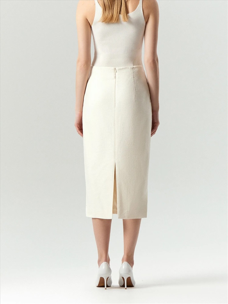 Элегантная юбка-карандаш создаст женственный образ в стиле lady like. Она одинаково хорошо подходит для праздников и будней. Приятный на ощупь твид состоит из хлопка с добавлением вискозы и эластана для сохранения формы. Это очень комфортный вариант на демисезон и не только. Юбка сделана на подкладке с высоким содержанием вискозы. Модель миди с высокой посадкой визуально вытягивает силуэт. Завершить образ можно жакетом из комплекта, нарядными блузами и множеством других вариантов верха.