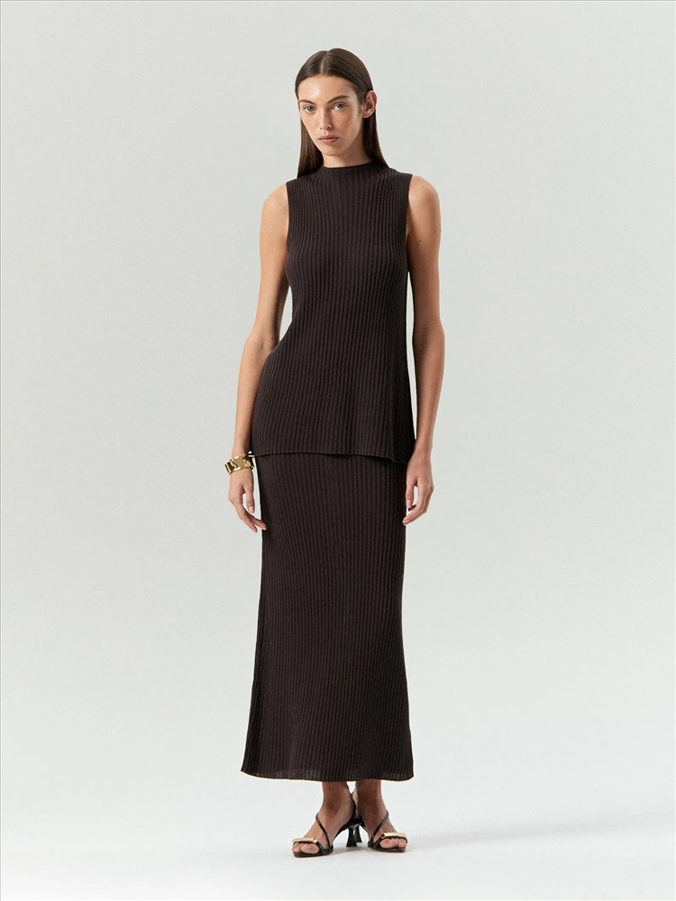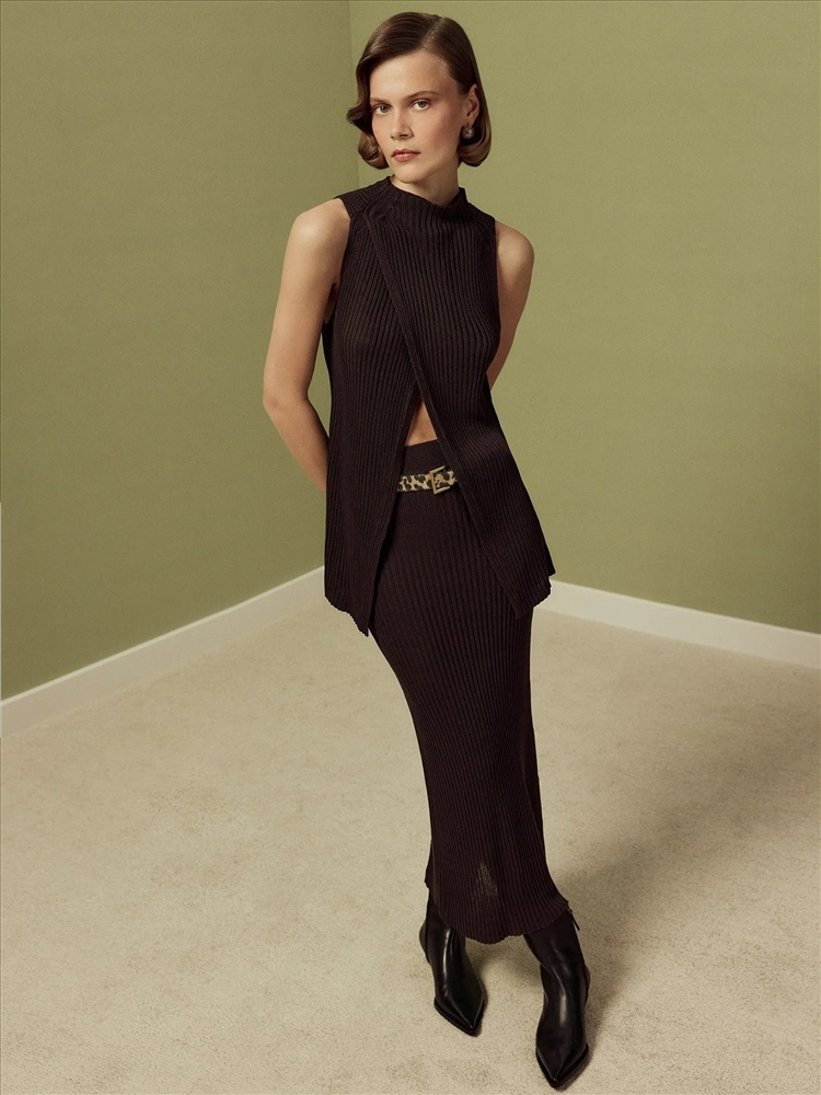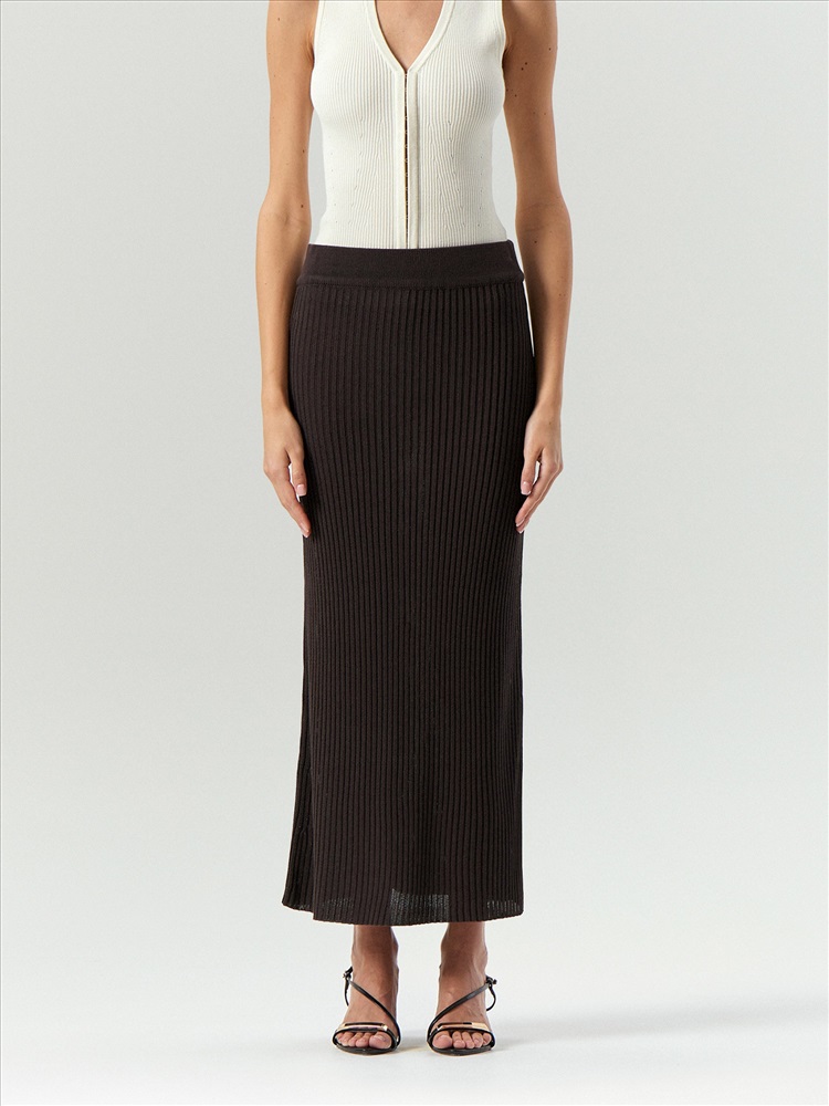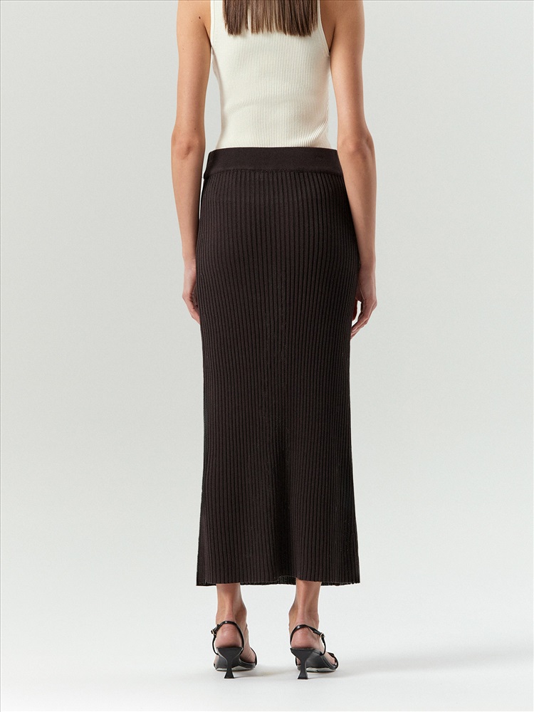 Юбка-лапша в тёмно-сером цвете. Модель на плотной широкой резинке отлично садится по фигуре. Подходит для демисезонных образов. Выполнен из приятного к телу вискозного трикотажа с добавлением нейлона для лучшей посадки и большей прочности. Модель с проймой комфортной глубины может использоваться как верхний слой. Завершить образ с топом можно юбкой из комплекта.