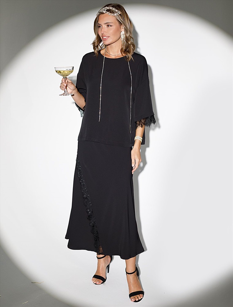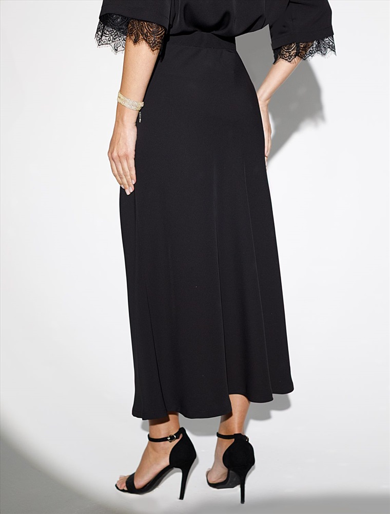 Юбка миди на запАх черного цвета выполнена из креп-шифона, который придает изделию легкость и воздушность. Эффектная модель украшена изящным кружевом, добавляющим женственности и элегантности образу, ткань отличается мягкостью, приятна к телу. Шикарное сочетание премиальных материалов делает юбку универсальной как для повседневной носки, так и для особых случаев. Благодаря продуманному крою и удобной посадке, она подходит и для больших размеров, обеспечивая комфорт в течение всего времени носки. Фасон юбки на запАх выгодно подчеркивает талию, создавая стильный акцент, визуально корректирует объем бедер и вытягивает силуэт.