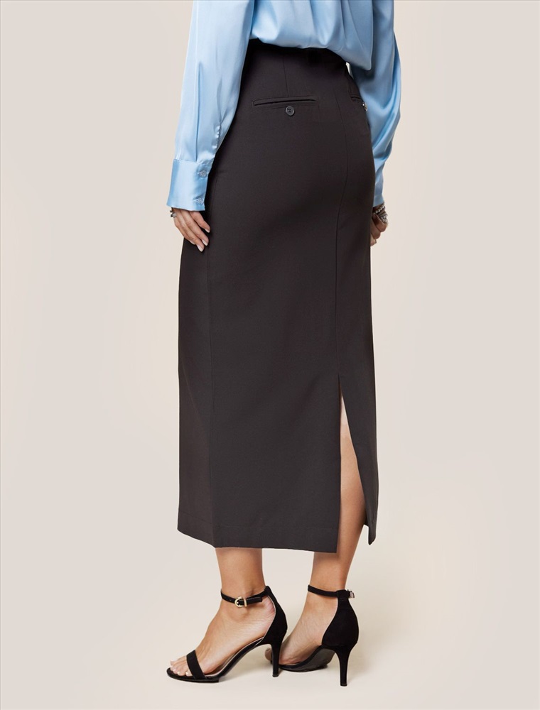 Юбка миди с двумя трендовыми разрезами выполнена из премиальной поливискозы с эластаном. Элегантная модель по фигуре хорошо впишется в строгий деловой образ, не нарушая выдержанного дресс-кода. Эластичный материал поддерживает оптимальный микроклимат, формоустойчивость и комфорт в течение всего дня.