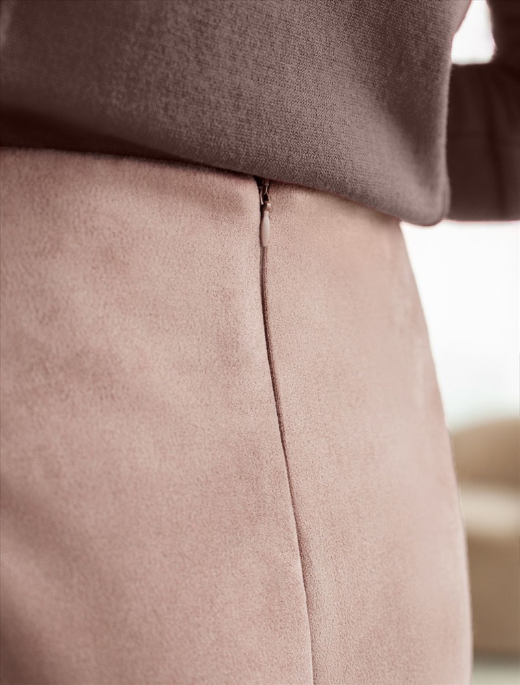 Юбка выполнена из мягкой искусственной замши. Прямой силуэт дополнен разрезом сзади, что обеспечивает свободу движений и еще больший комфорт. Мягкий материал в точности имитирует натуральную замшу, но в уходе и носке более практичный. Внутренняя сторона изделия без подклада, гладкая и приятная к телу. Юбка легко комбинируются с любыми блузками, лонгсливами, свитерами и водолазками.