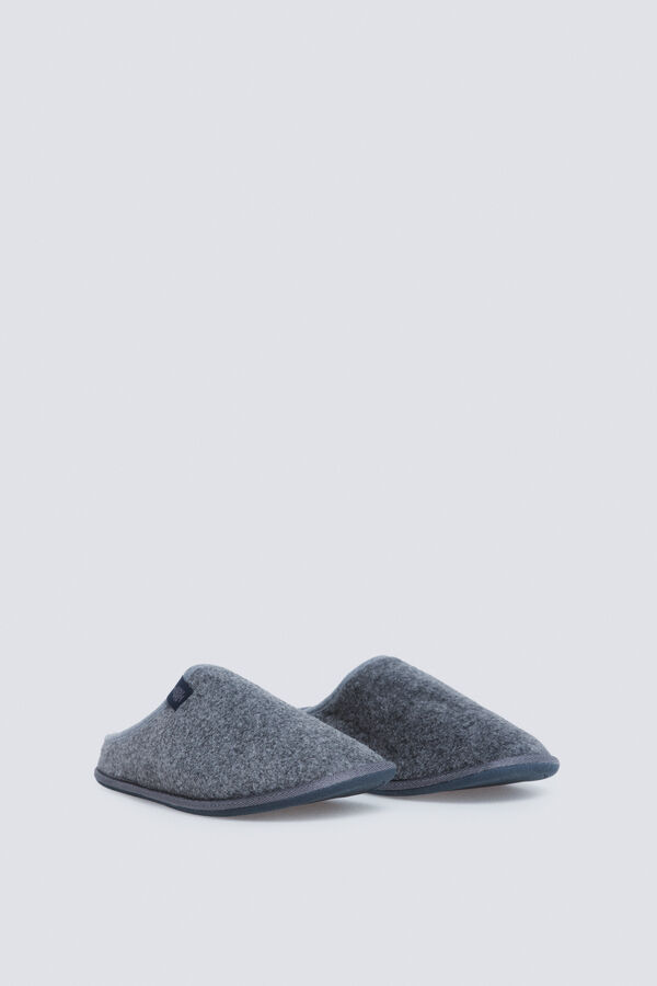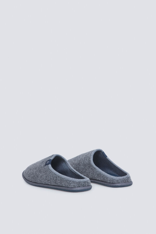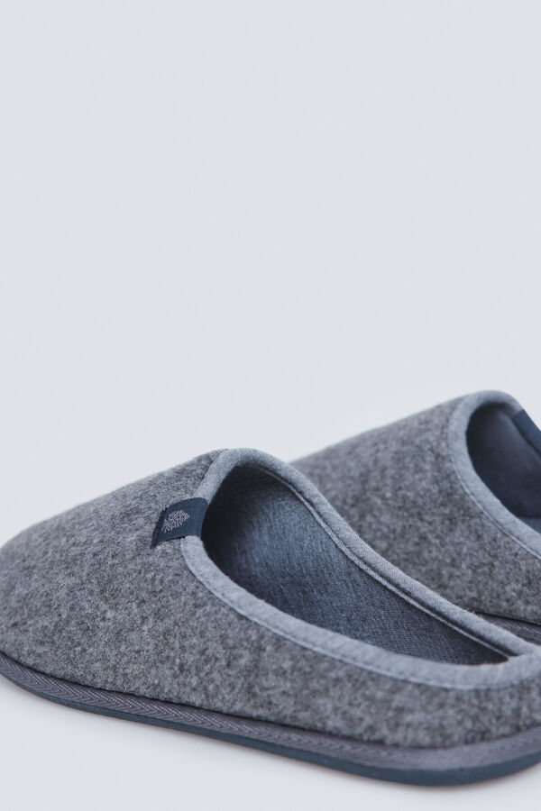 Zapatilla de estar por casa destalonada, disponible en dos colores. Tejido en el corte efecto borreguito. Plantilla acolchada confort, y suela de goma ligera a contraste de color.