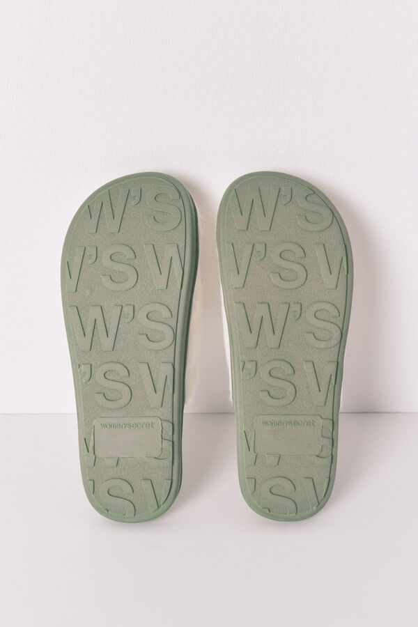 Zapatillas de estar por casa,cerradas con el interior estampado en cuadros vichy y la pala en textura de pelo. Ideal para complementar tus looks de estar por casa.