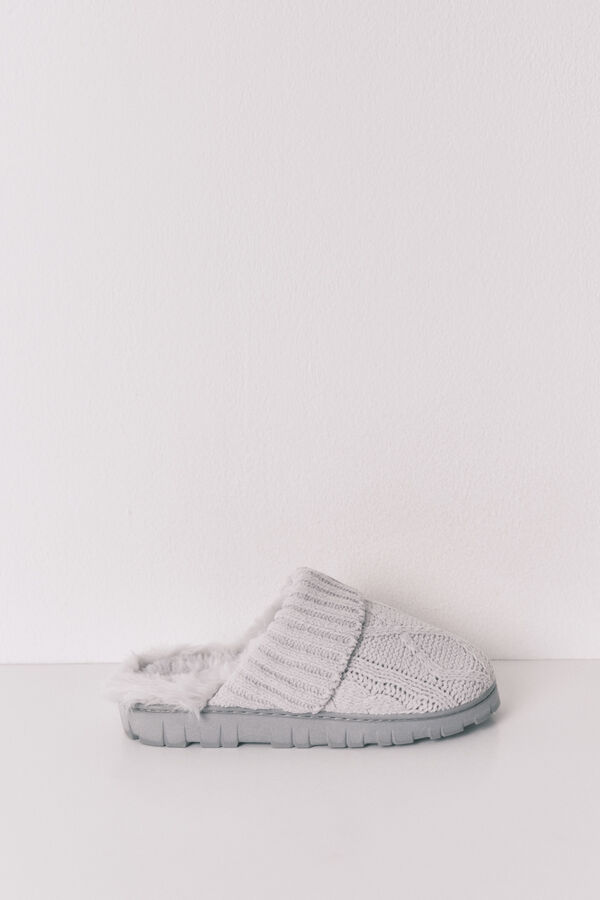 Zapatillas de estar por casa con diseño de tejido punto tricot en la pala exterior y forradas de pelo por dentro. Hechas para que tus pies descansen y perfectas para cuando llega el frío.