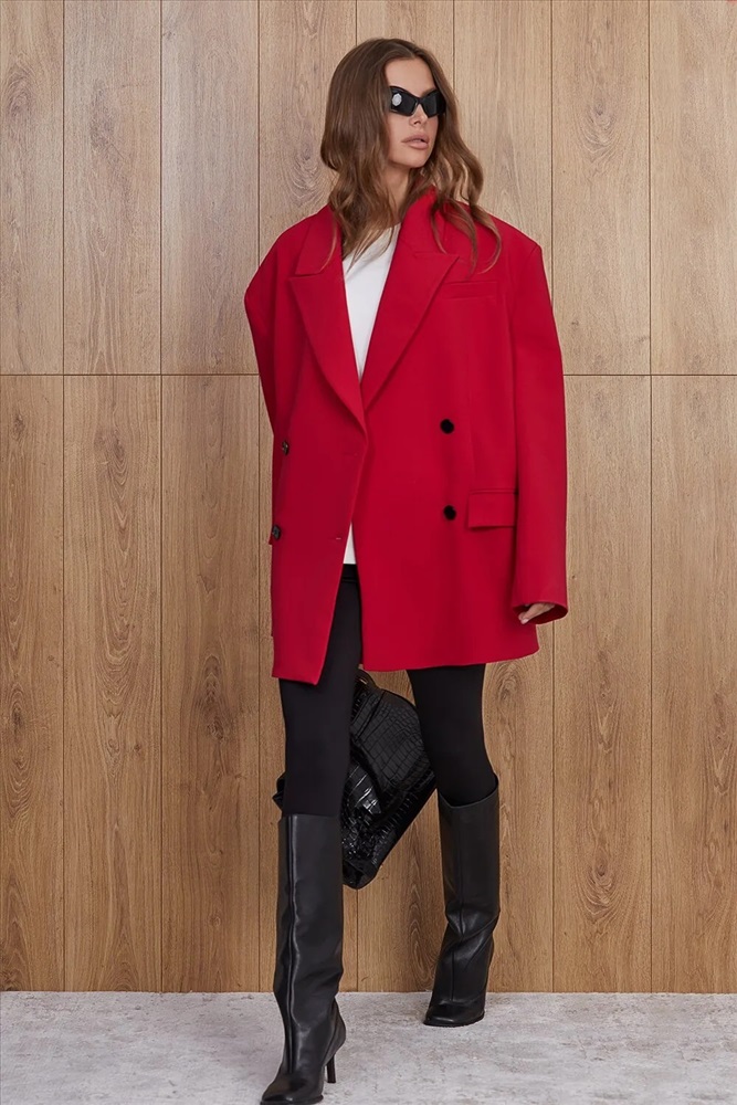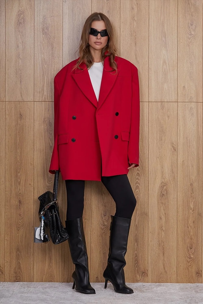 Жакет прямого силуэта, выполнен из костюмной ткани на авторской вискозной подкладке. Жакет прямой, выполнен по типу “мужской пиджак”. Усиленное удлиненное плечо. Изделие с двубортной застежкой на 4 петли и пуговицы. Воротник пиджачного типа. На полочках нагрудные вытачки, прорезные карманы в рамку и клапаны, декоративный прорезной карман с листачкой на верхней левой полке жакета. Борта прямые. Спинка прямая со средним швом. Рукав прямой, двухшовный. Длина изделия 80см Комментарии к товару
