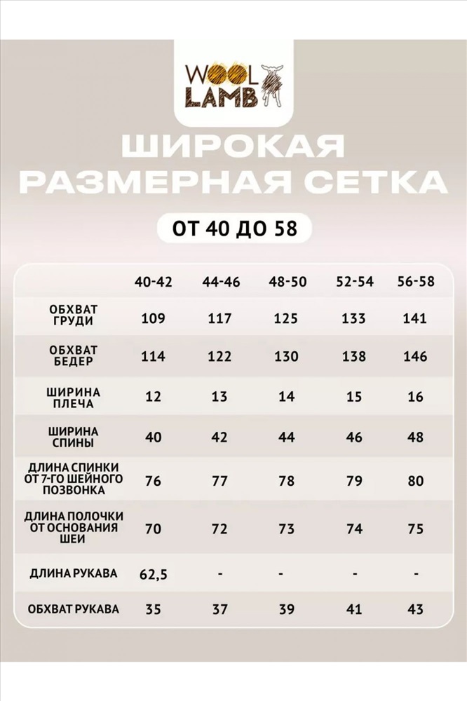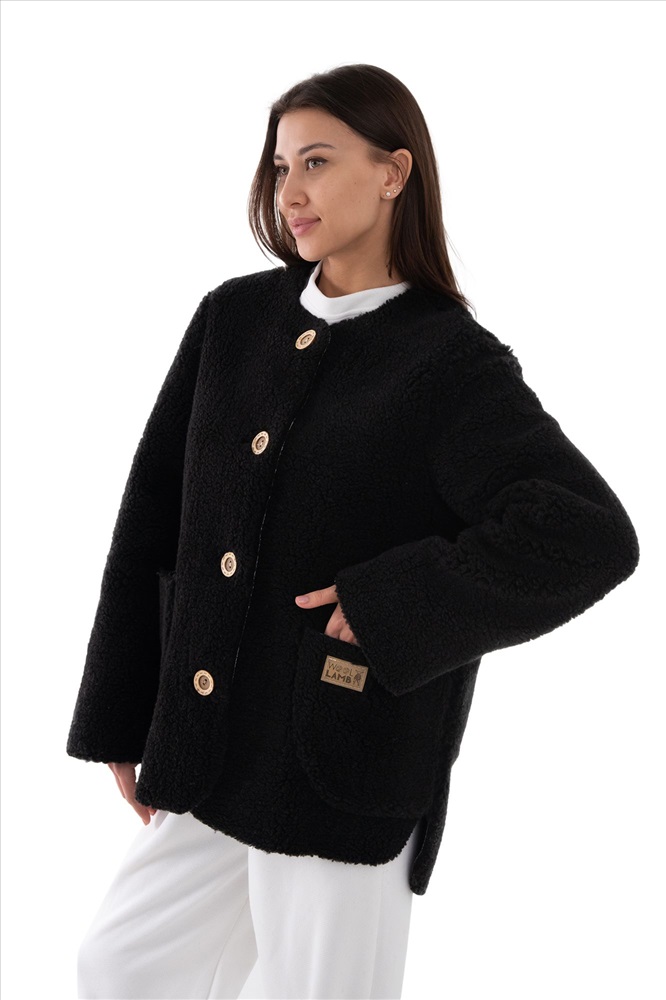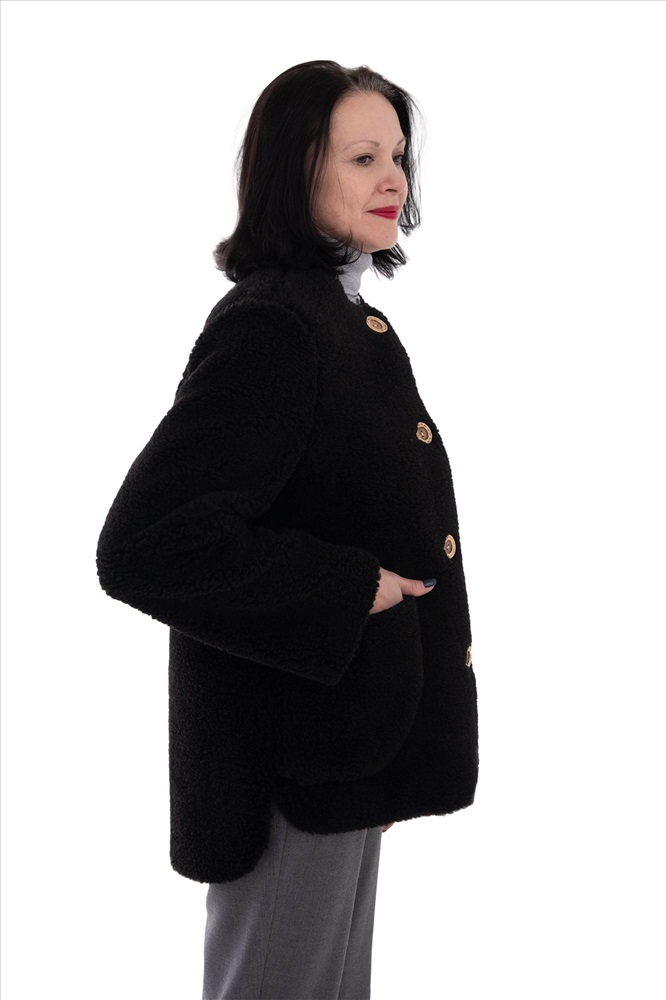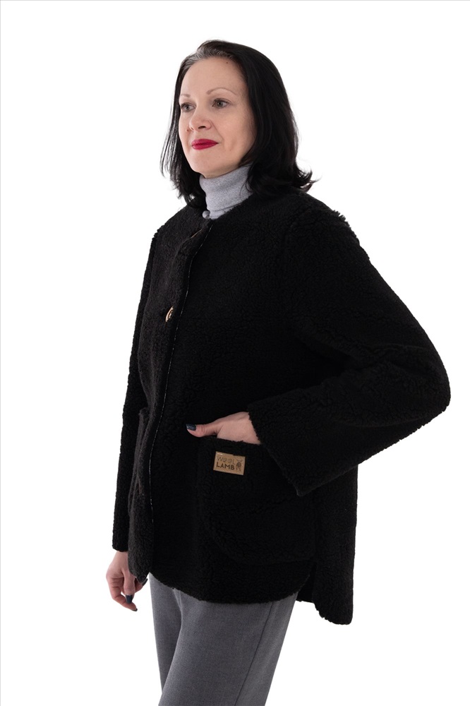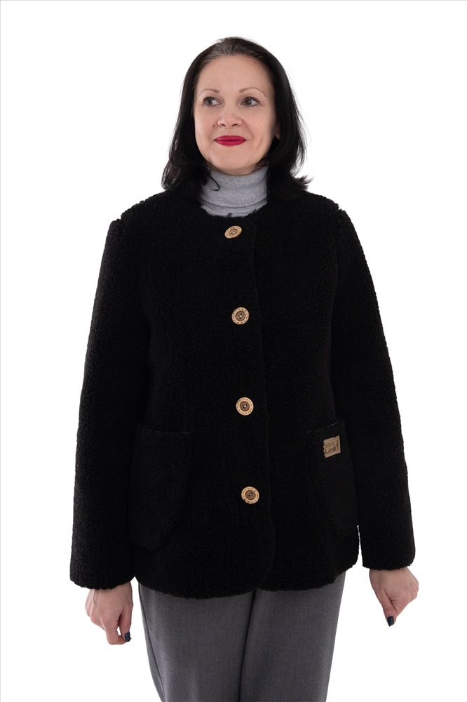 В таблице размеров указаны замеры готового изделия., Жакет меховой, БЕЗ ОБРАБОТКИ КРАЯ, застежка пуговицы, накладной карман, без воротника. Высота ворса 12 мм, изнутри меховой начес., Куртка легкая имеет прямой силуэт и стильный дизайн. Это позволяет носить ее в осенне-зимний период, как юным дамам, так и старшим поколениям. Шерстяной начёс из овечьего меха прекрасно держит тепло, согревает поясничный отдел и шею., Это позволяет снизить боли при радикулитах, смещениях позвонков., Оздоровительный эффект: Микромассаж шерстинками вызывает волны приятного тепла. Это позволяет чувствовать себя комфортно в любой мороз. Так же жакет помогает снизить боли в позвоночнике и мышцах спины, когда они застужены. Шерсть овцы прекрасно помогает расслабить спинные мышцы при тяжелых нагрузках., Уход за изделием: Все шерстяные изделия требуют ухода. Их запрещается гладить и подвергнуть химической очистке. Стирать можно при температуре воды не более 30 градусов с использованием специальных моющих средств. Не рекомендуется сушить куртку на солнце или батареях., Рекомендации по применению: Ежедневная носка.