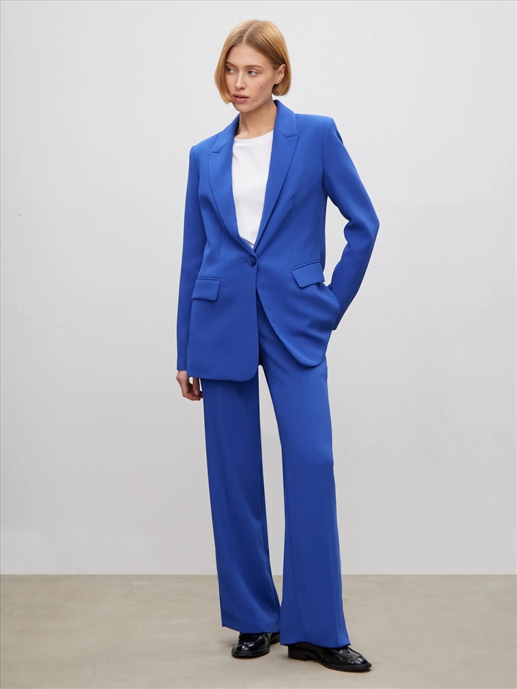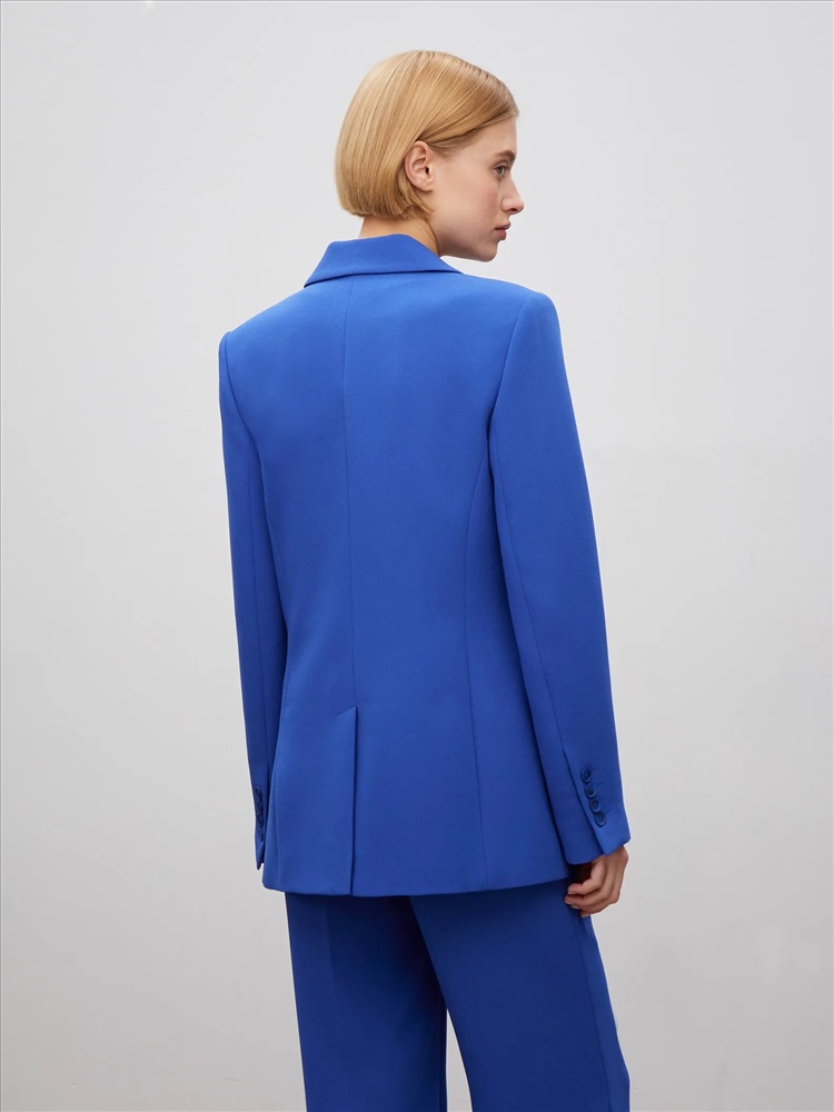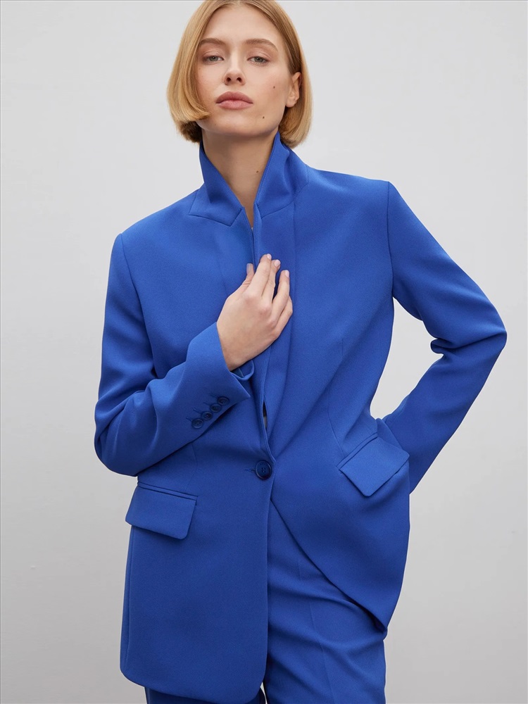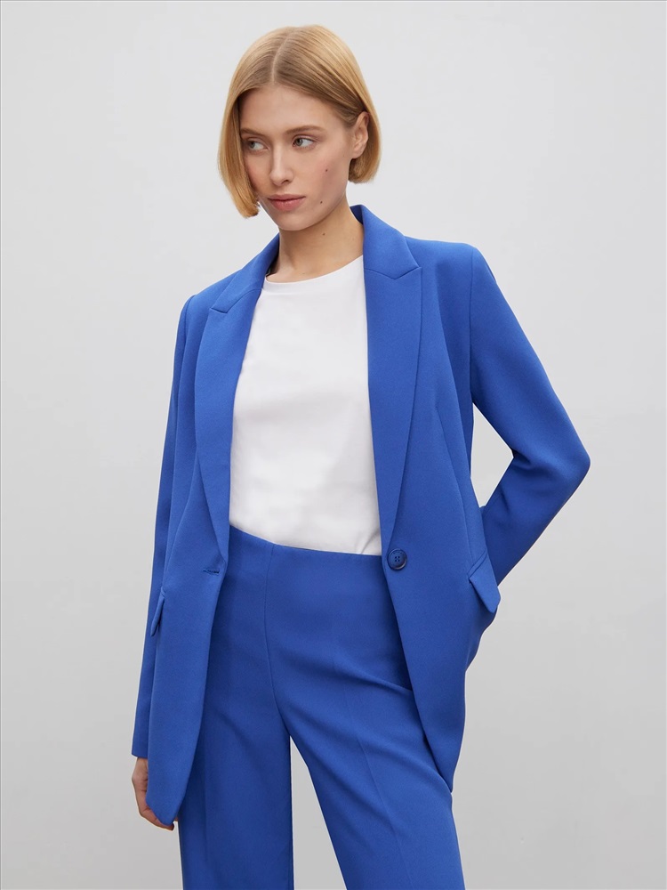 Яркий синий жакет для повседневных образов. Застёгивается на одну пуговицу ниже уровня талии. Удлинённую полуприталенную модель дополняют вытянутый английский воротник с острыми лацканами и карманы с клапанами. Завершить образ можно юбкой, брюками или платьем из комплекта. Изделие изготовлено из материала с высоким содержанием вискозы, на подкладке.