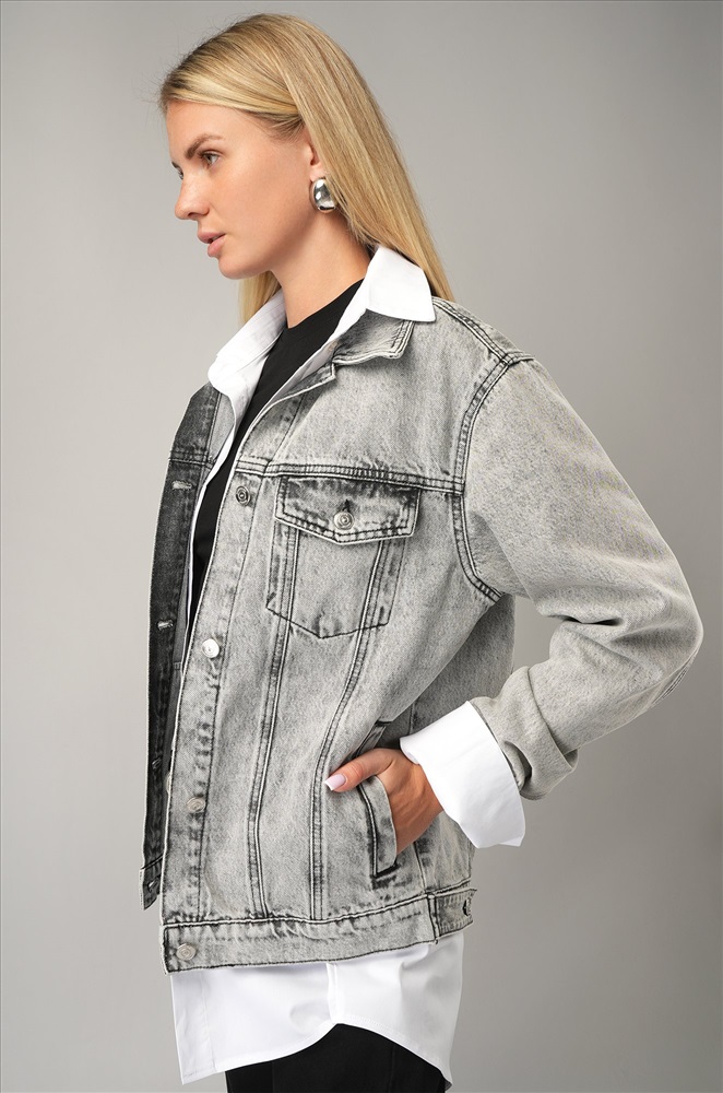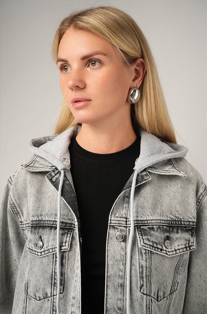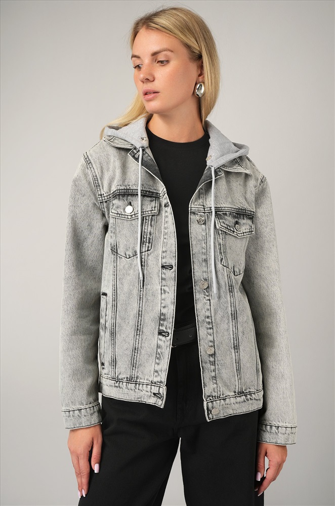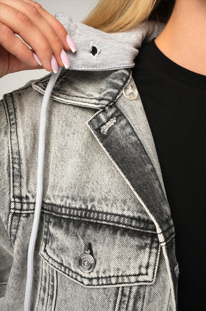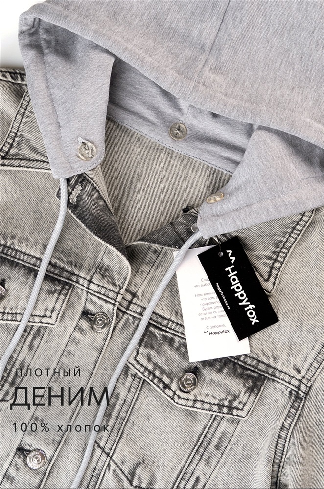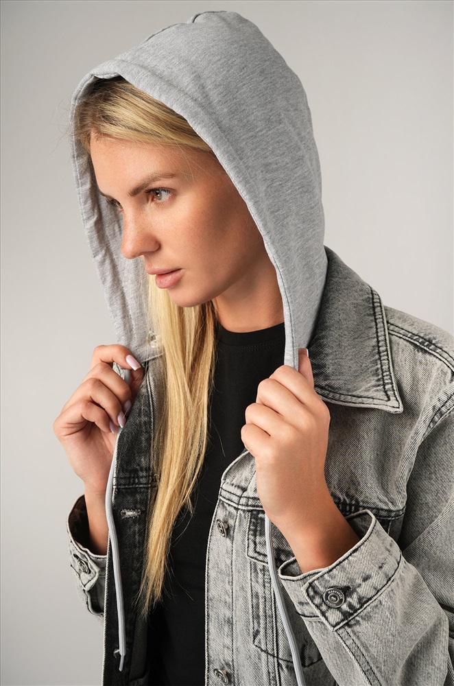 Женская джинсовая куртка с капюшоном — стильный и универсальный элемент гардероба в стиле смарт кэжуал. Светло-серая джинсовка станет вашим надежным спутником весной и осенью.