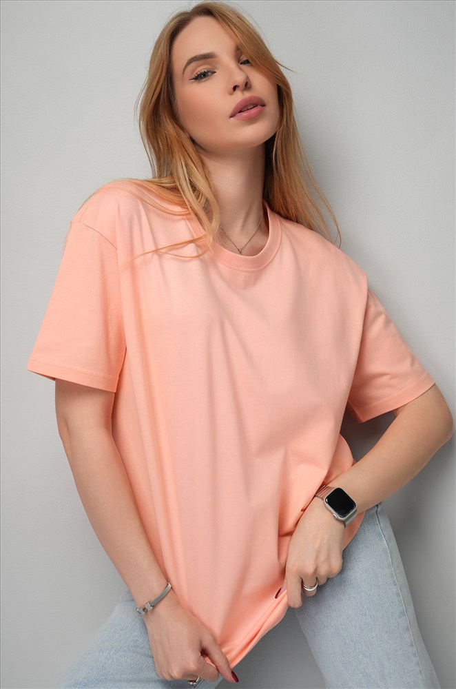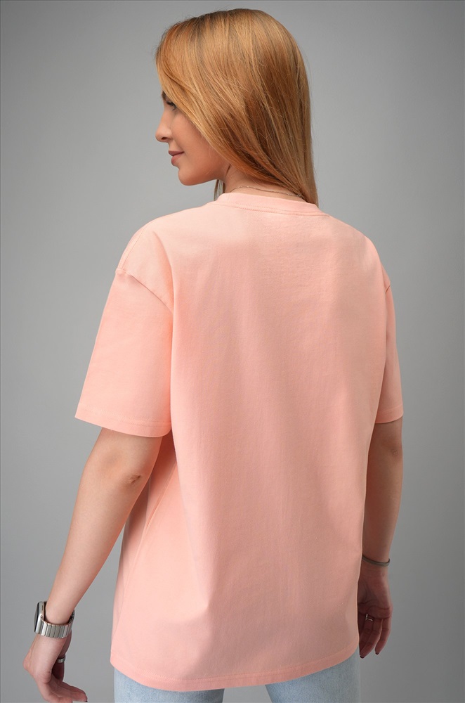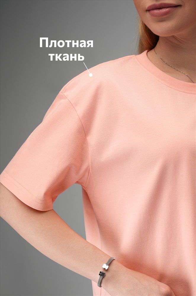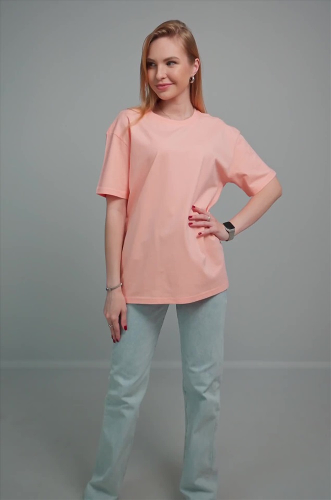 Свободная и такая освежающая! Светло-розовая женская футболка точно знает, как сделать день ярче. Плотный хлопок, мягкий трикотаж и расслабленный оверсайз создают безупречный союз для лета и не только.